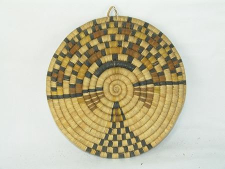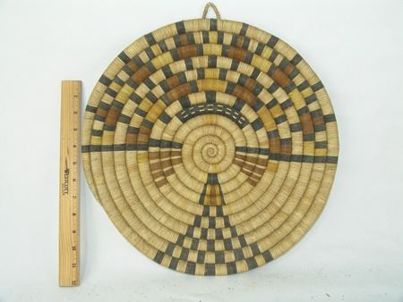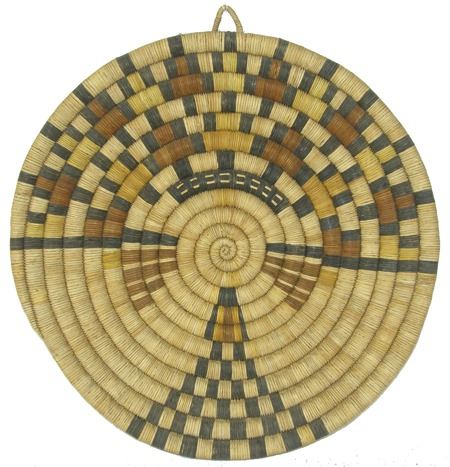 Ca. 1980s, Classic larger sized 2nd Mesa coiled plaque with kachina head motif. Very good condition. 15"