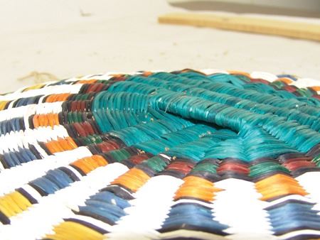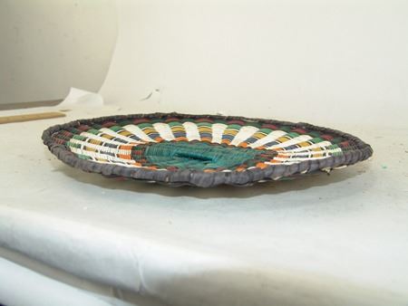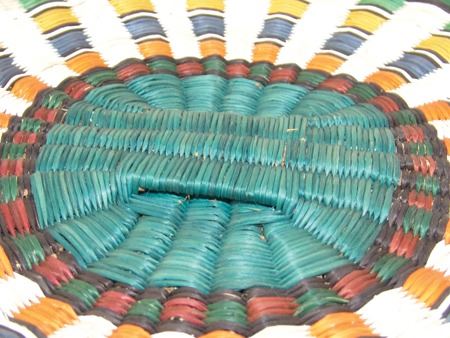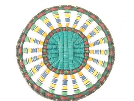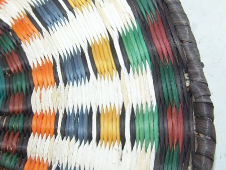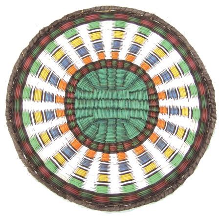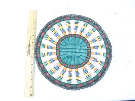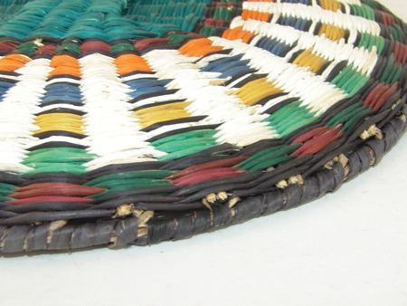 Ca. 1970s, Finely woven 3rd Mesa plaque with vibrant colors. Very good condition. 10" diam