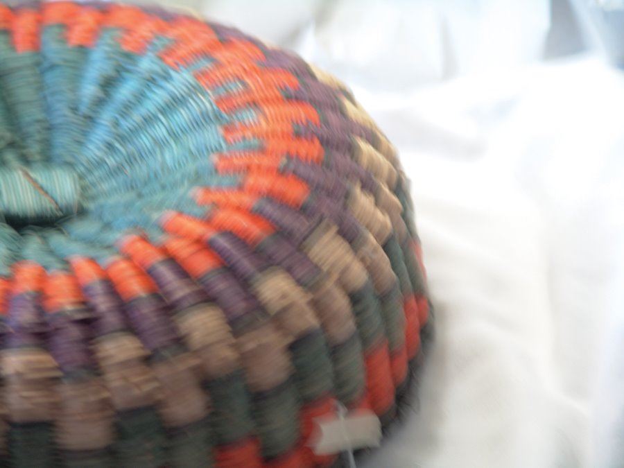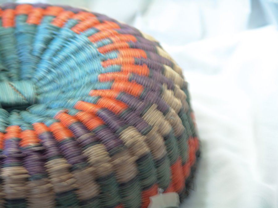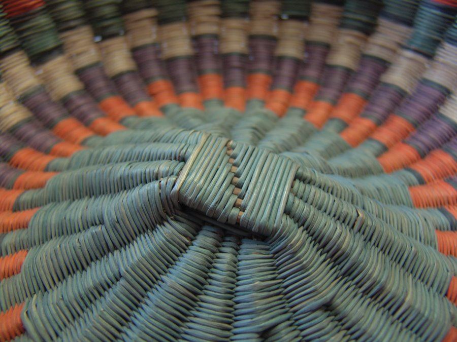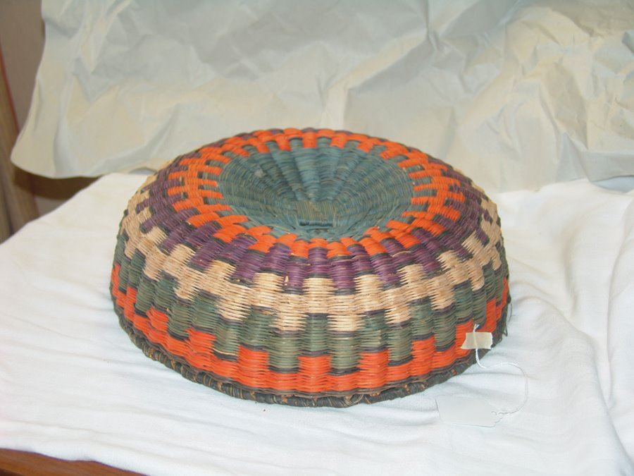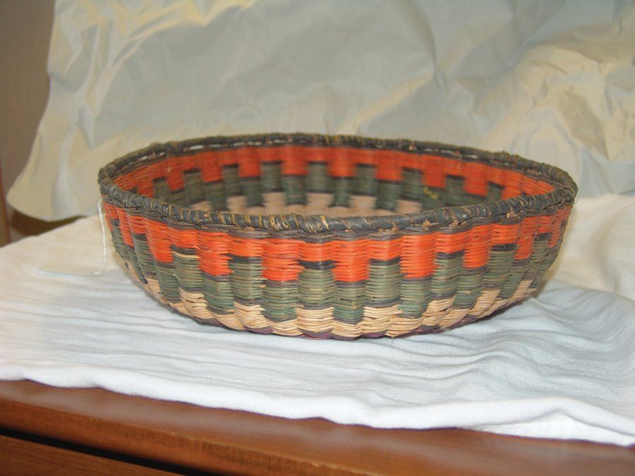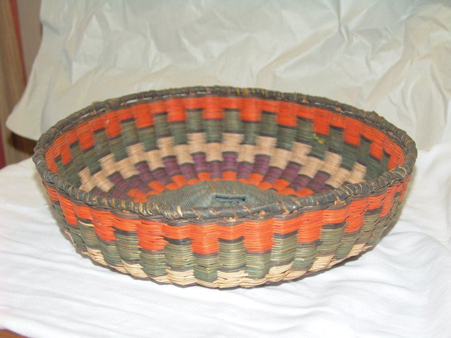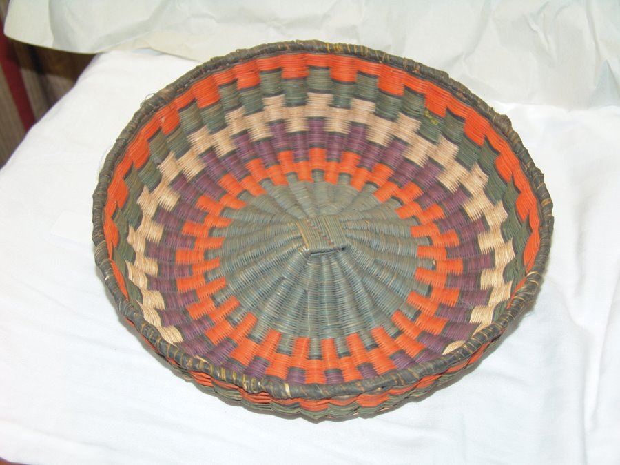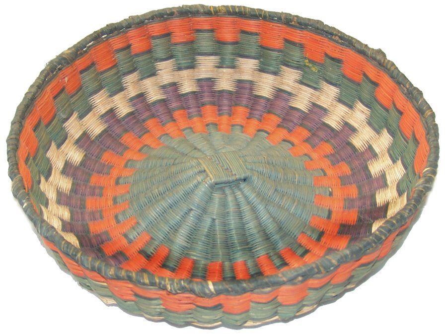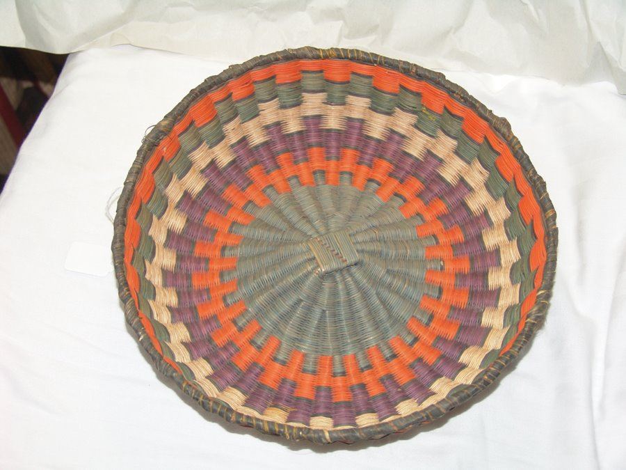 Colorful 3rd Mesa wicker weave shallow bowl with still vibrant colors. Very good condition.,Ca. 1940s-1950s,3-1/4" x 14"