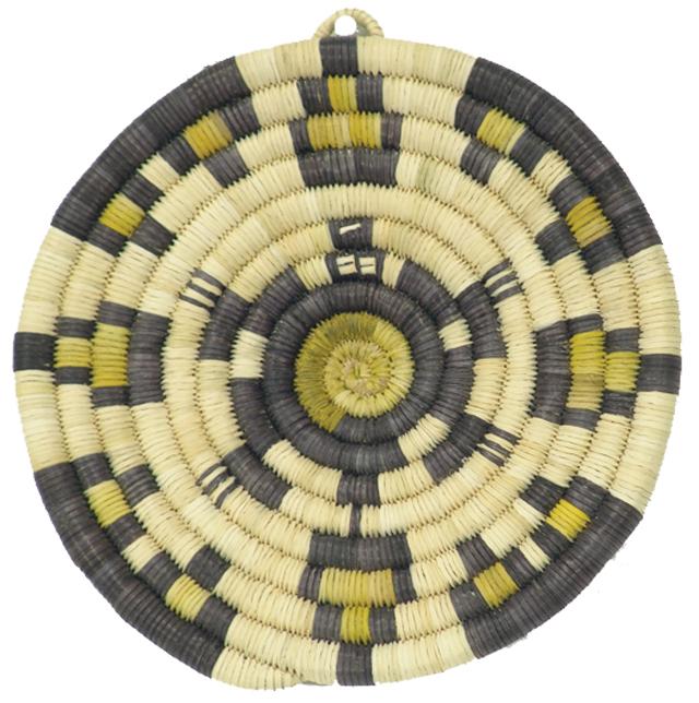Late 1900s, Tightly woven 2nd Mesa coiled plaque or tray with two-color turtle design; excellent condition. 8-1/2" dia.