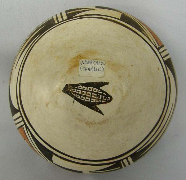 Hopi Bowl by Lena Charlie, some wear, measures approx. 3'' x 6'', polychrome. SHI $35.