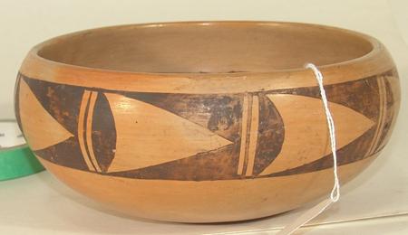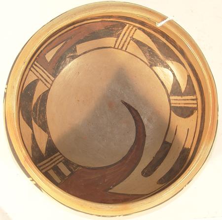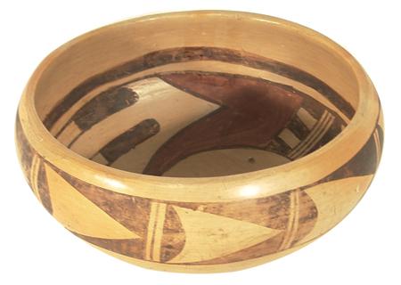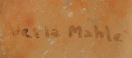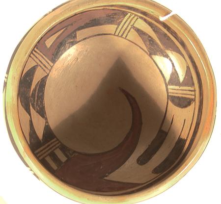 Classic polychrome bowl with interior bird motif and exterior rim geometrics. Signed Verla Nahle. Condition: good. 3-3/4" x 8"