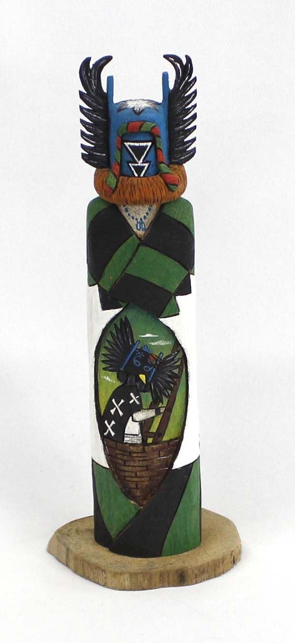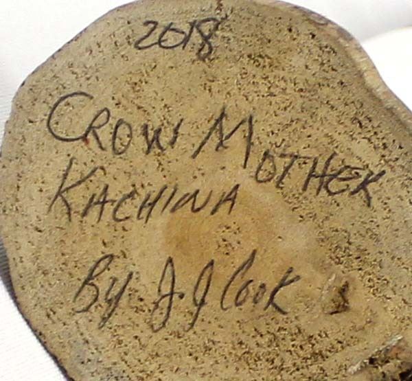 2018 Native American Hopi Carved Wood Crow Mother Kachina by J.J. Cook, measures 9.5'' x 3.5'' x 2.5'' and is signed on the bottom, beautifully carved, wood burned, and hand painted, gorgeous colors