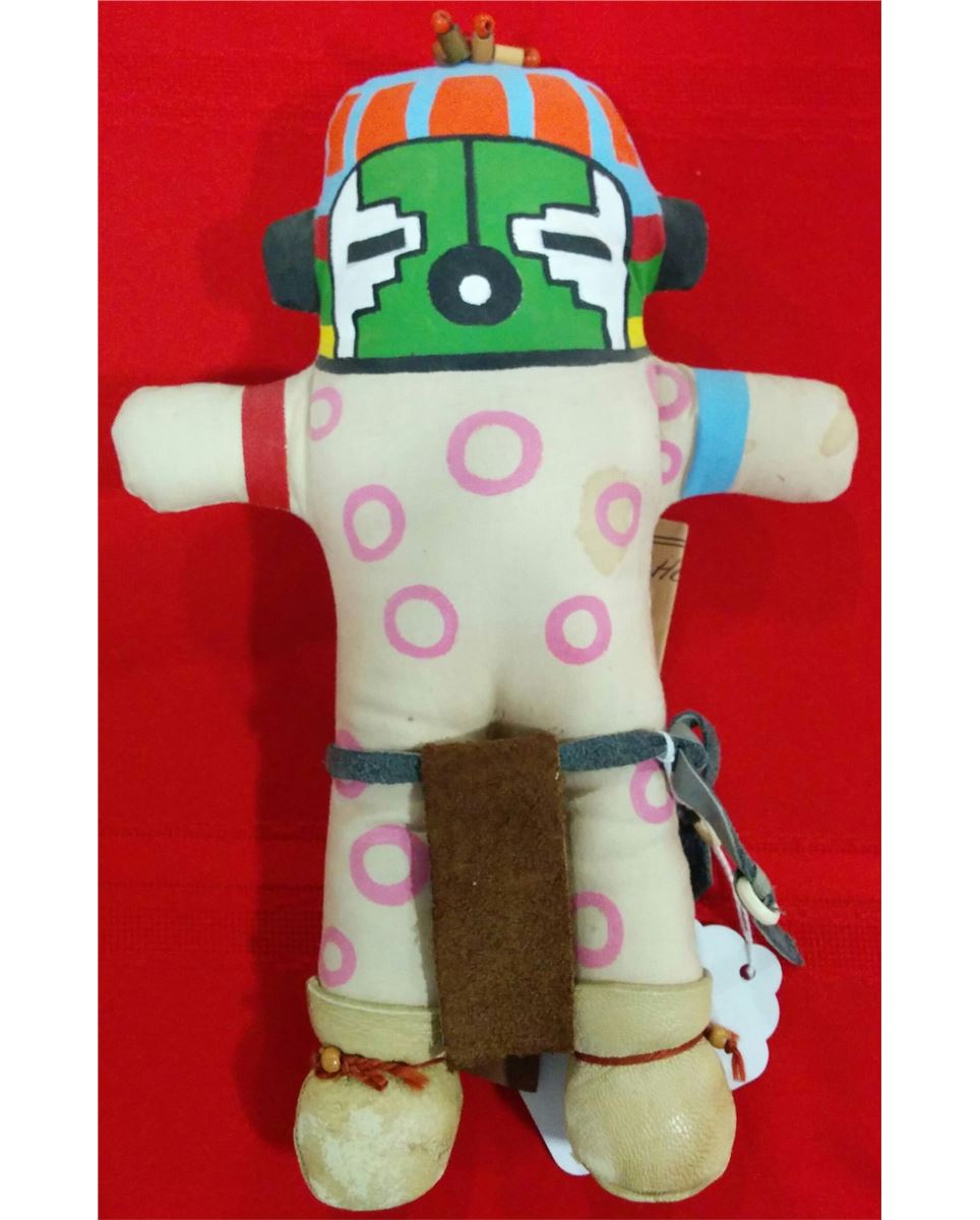 Hopi Cloth doll measuring 10x6x2 inches. This item is possibly from the 1940's. There is a paper with information about the kachina. Condition: Some minor wear. Shipping $14.00