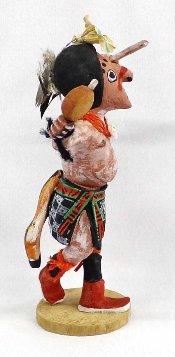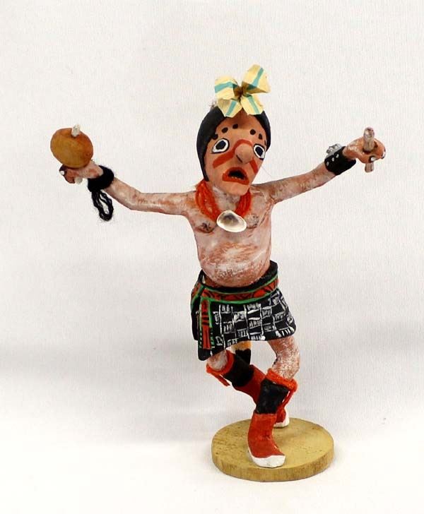 Hopi Clown Kachina, measures 6x7", there is a chip out of his left moccasin