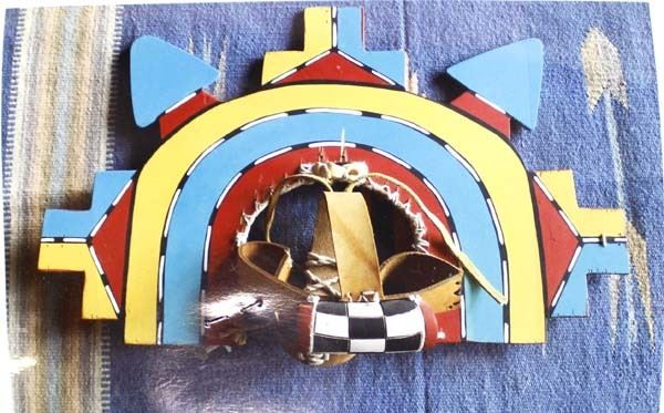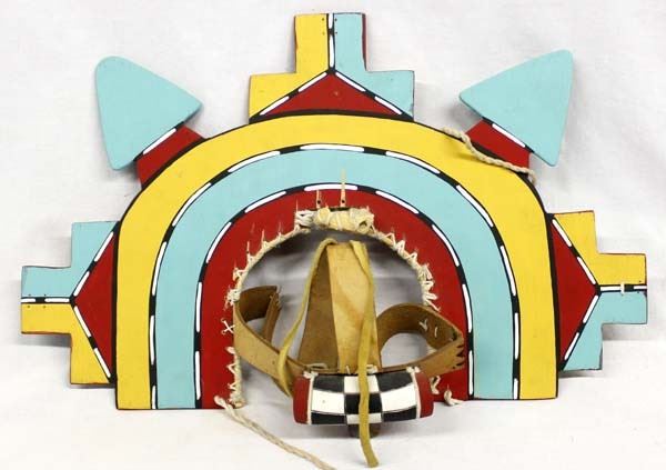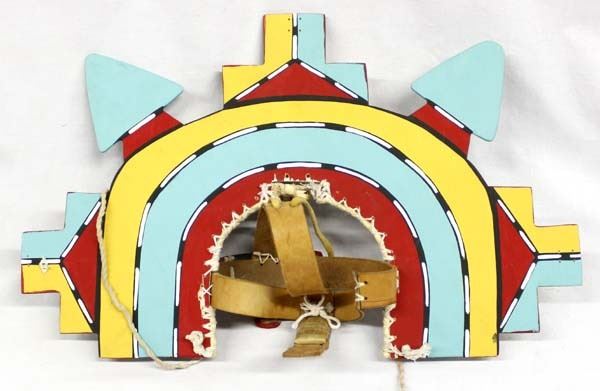 Native American Hopi Hand Painted Carved Wood Tableta Headdress, measures 13'' x 22'', leather headpiece, beautiful vibrant colors
