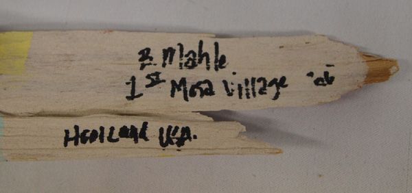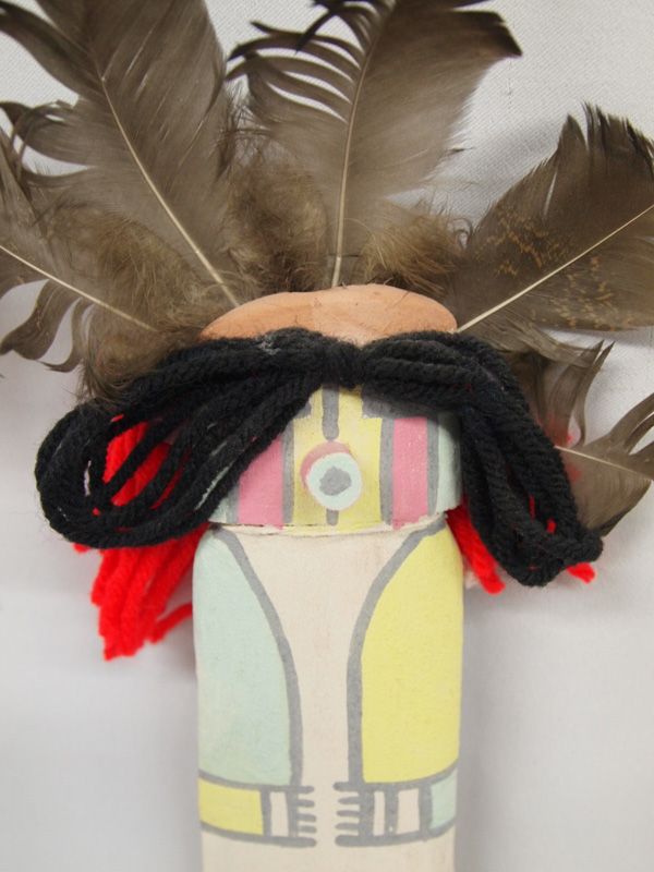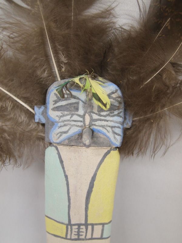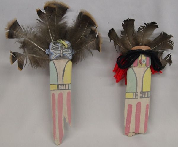 Pr Hopi Handcarved Handpainted Cradle Board Kachinas, largest measures 13''L x 7''W (counting feathers). One Kachina has artist name on the back.
