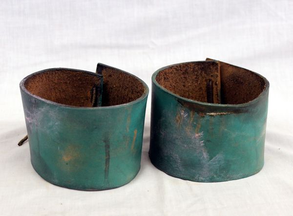 From the Nick and Suzanne Nicholas Collection we have Hopi Handpainted Leather Turquoise Arm Cuffs, measures 14.5'' end to end and 3''H, leather ties