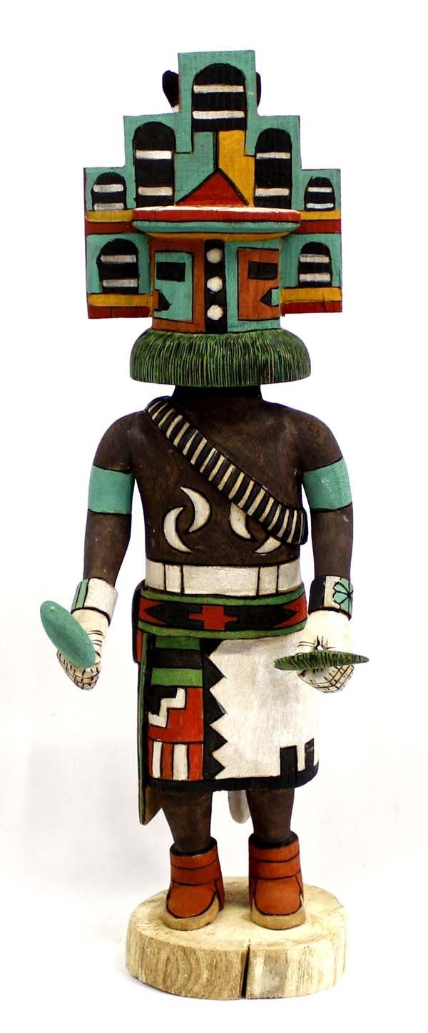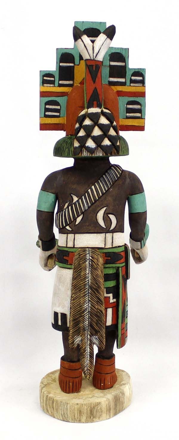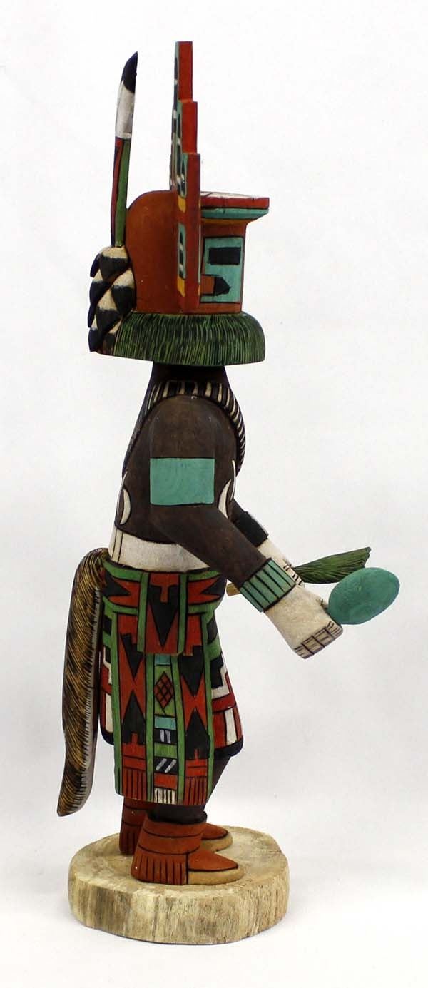 Native American Hopi Hemis Kachina by Elmer Adams, measures 5'' x 15.25'' and is signed, beautifully hand carved and painted