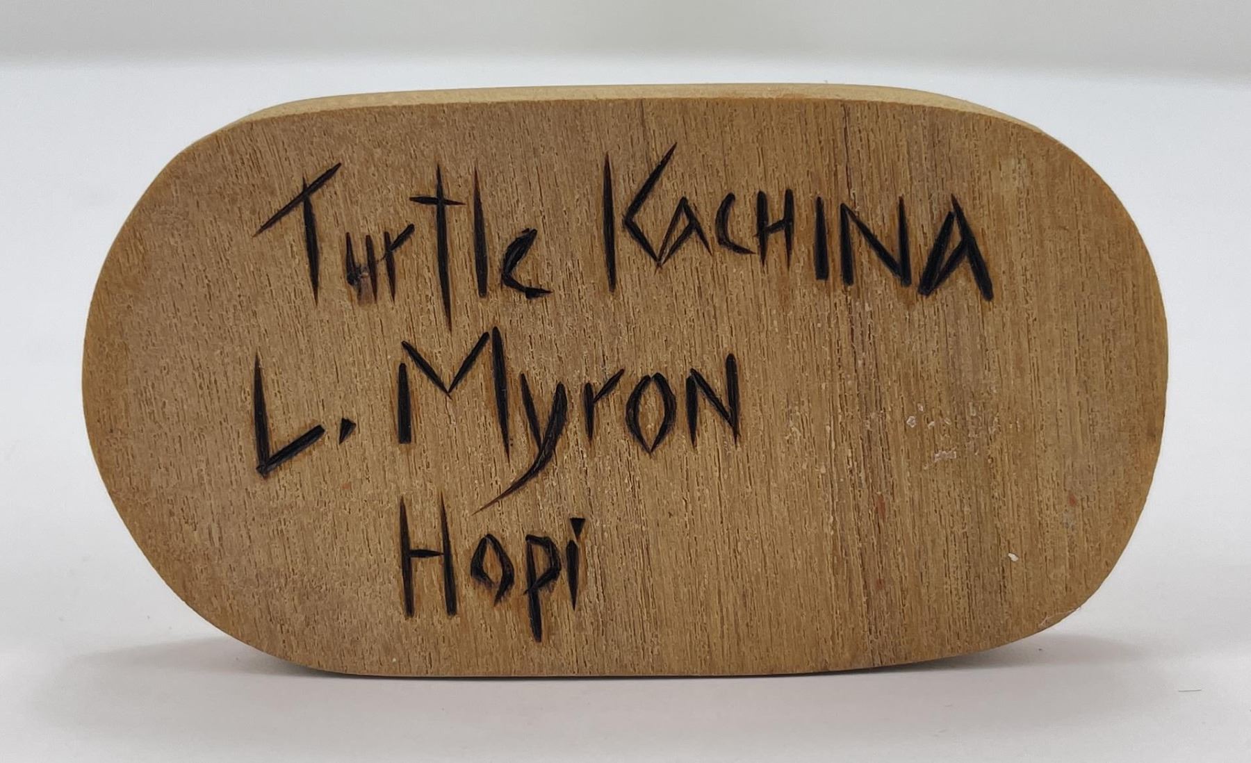 Turtle Kachina by L. Myron. 9 3/4" tall. Sold as-is.