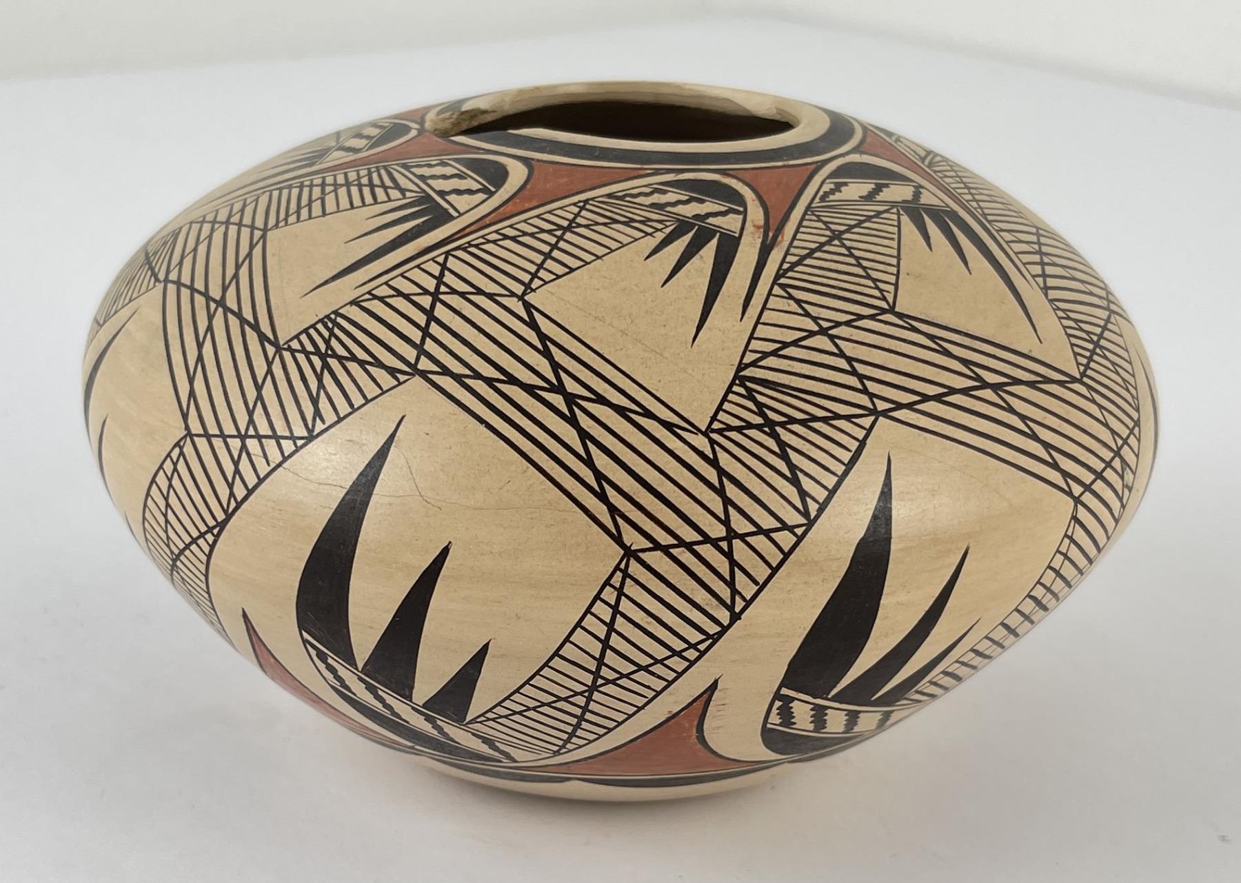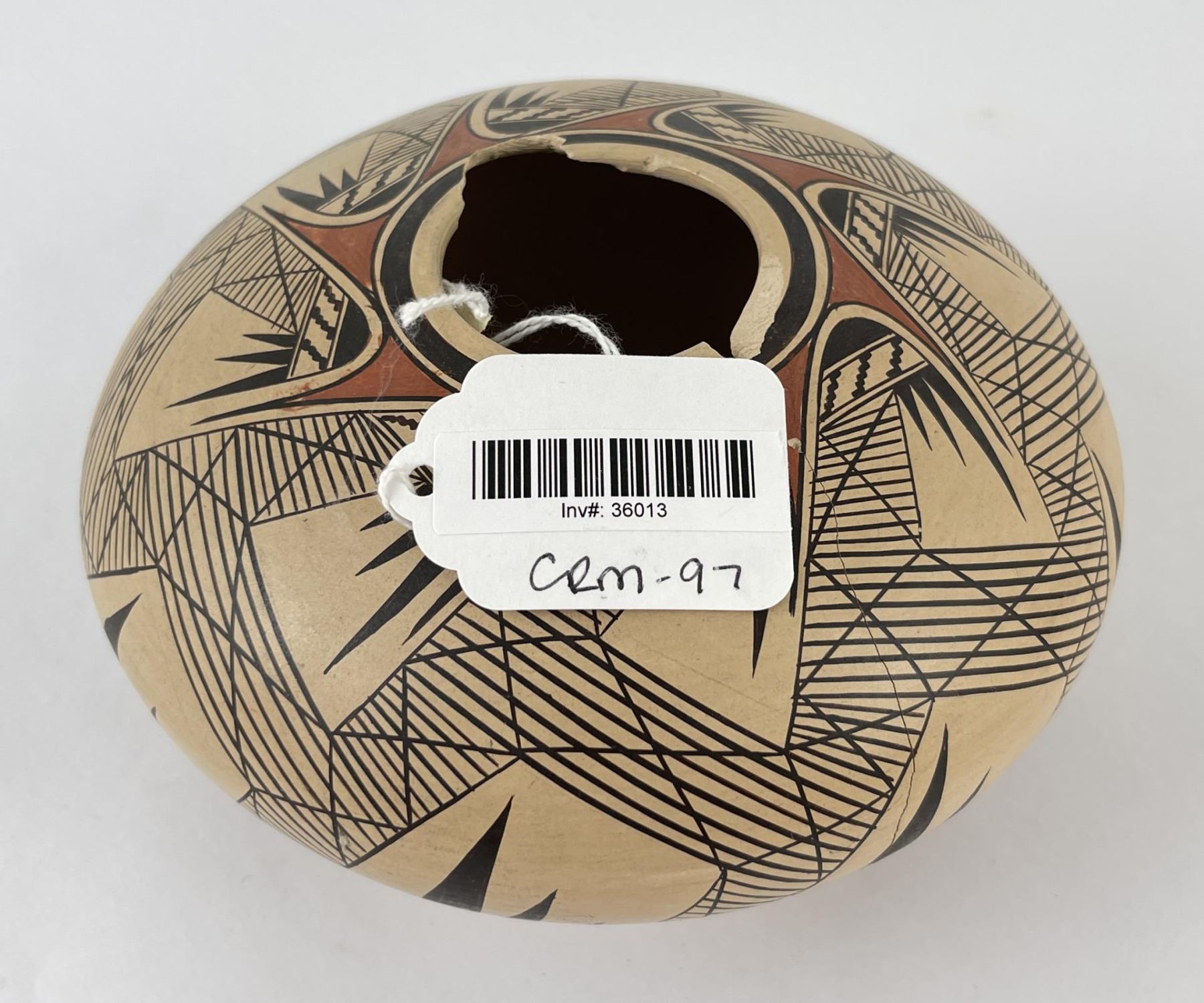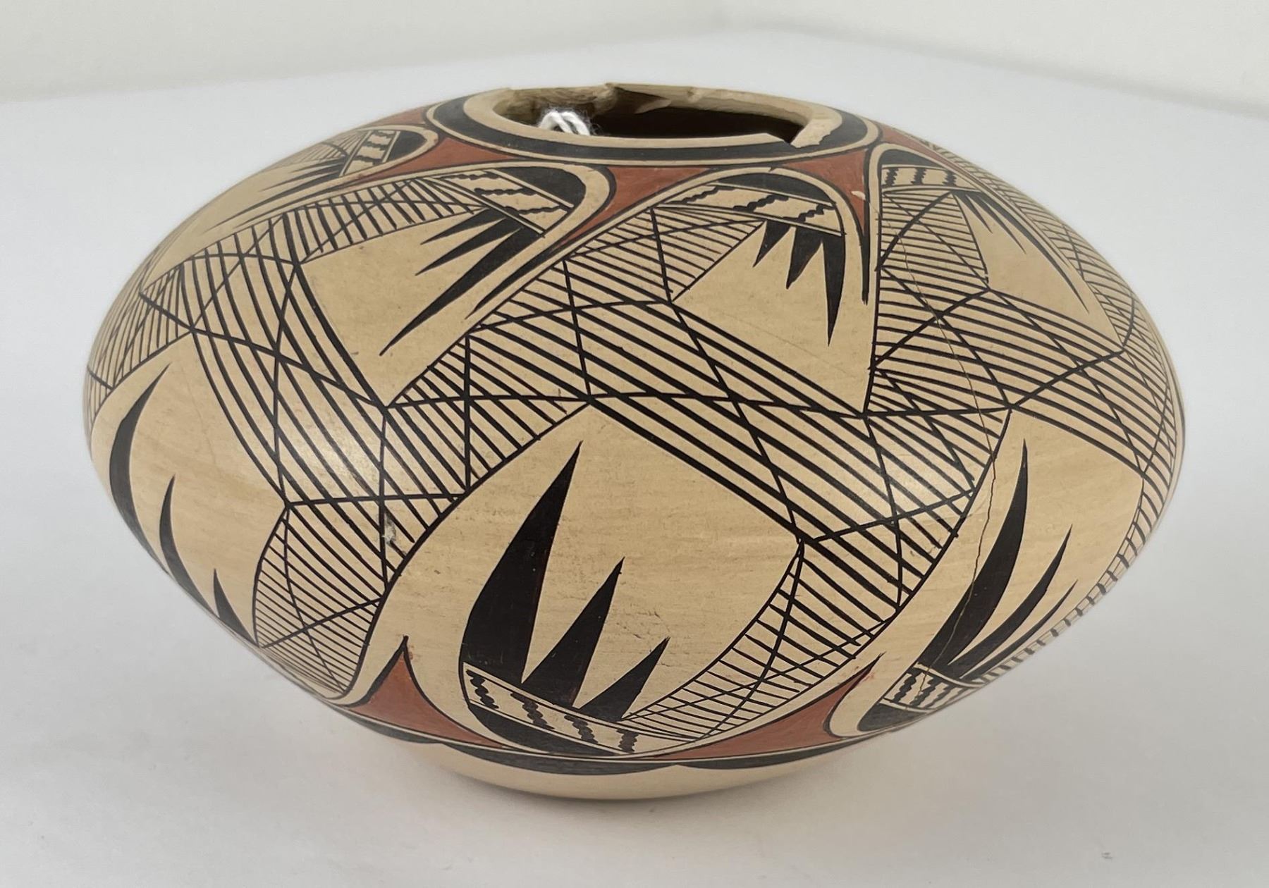 Damaged as shown. 5 1/2" diameter. 3 1/2" tall. Allard Auction Collection Inv: CRM 36013