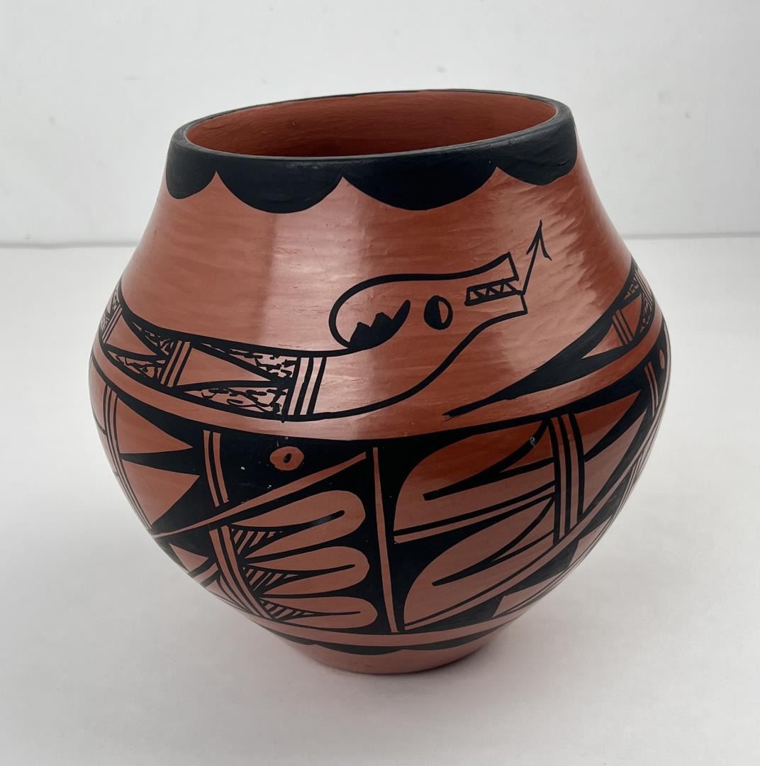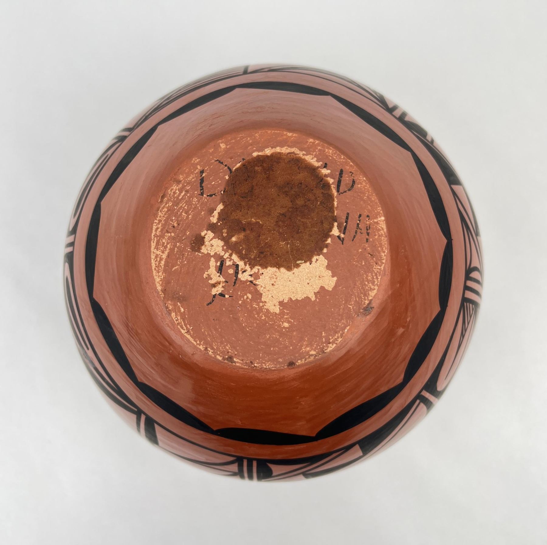 Was signed at some point but it is now washed away. 8 1/4" tall, 8 7/8" diameter.