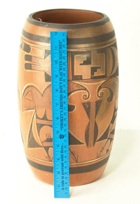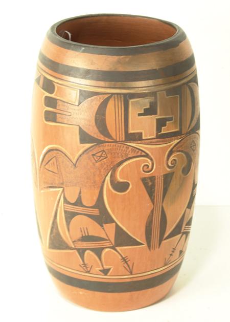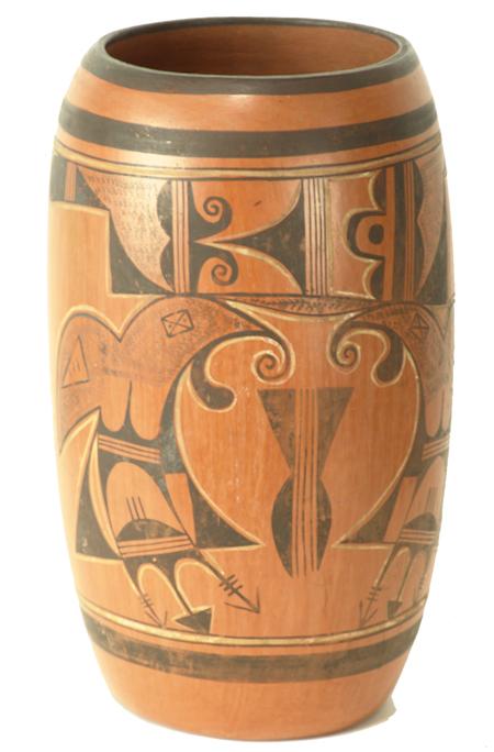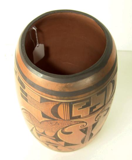 Circa Mid 1900s, Great polychrome jar with classic bird and geometric designs. Hallmarked. Excellent condition. 12-1/2" x 7"