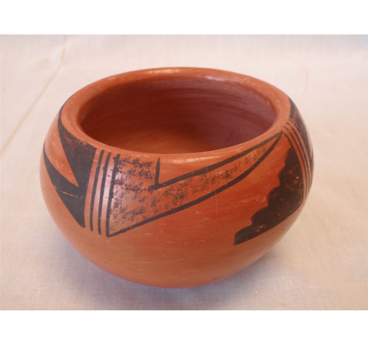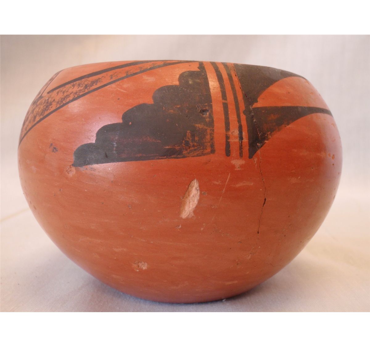 Black on Red Hopi Jar. Has stabilized pressure crack with some surface damage. Measures: 4" Diamater x 3" Tall Shipping on this lot: $10.00. Additional Shipping Charges for Lots sent outside of the U.S