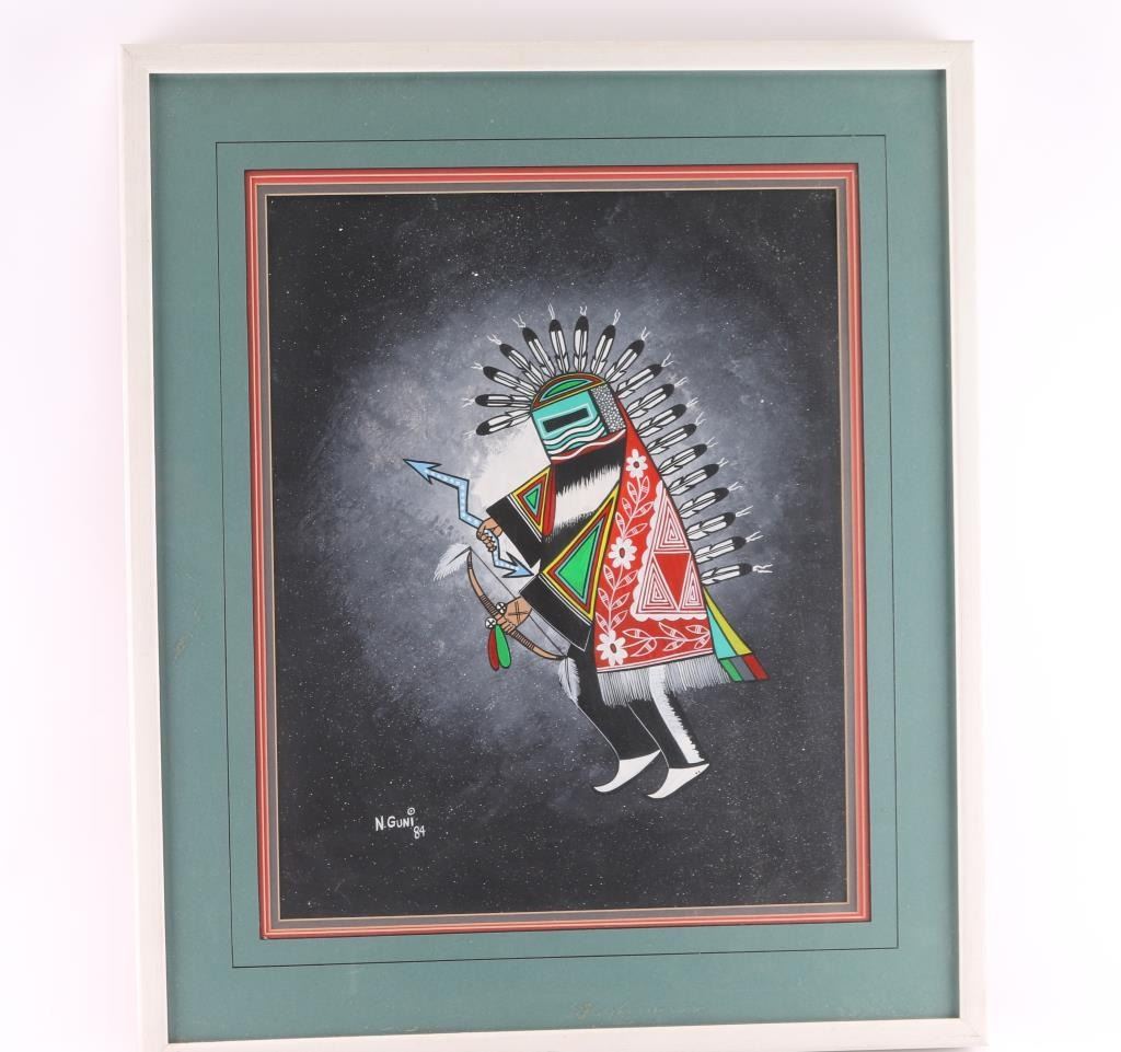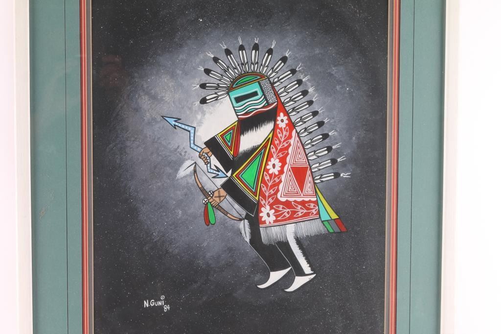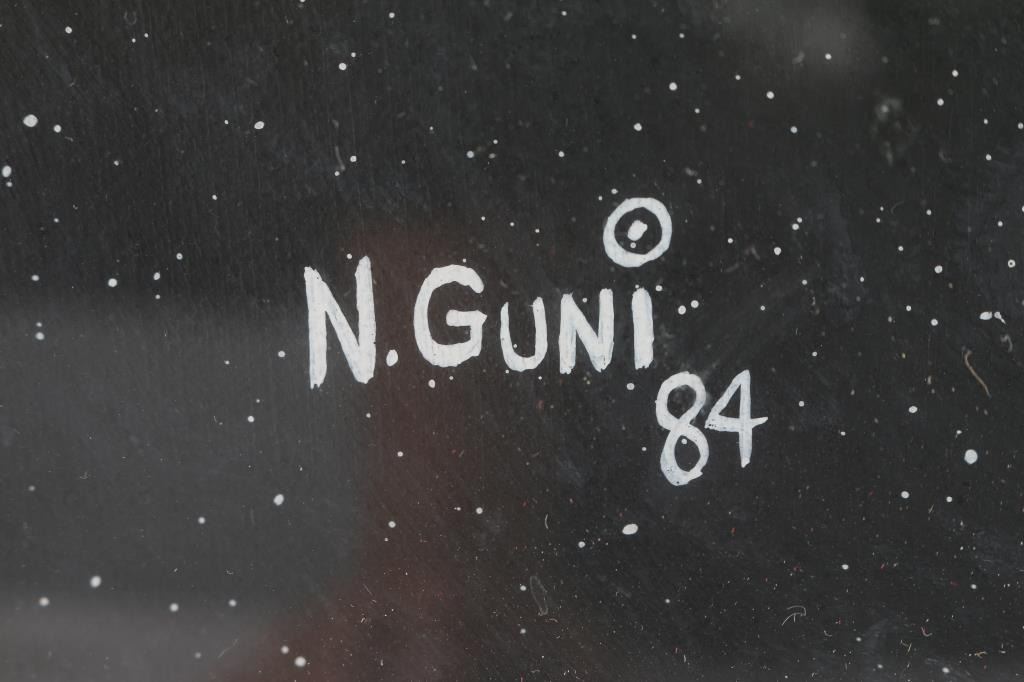 Signed N. Guni and dated '84 in lower left corner. Measures 23" x 27 1/2" in white painted wood frame; painting measures 15 1/2" by 19 1/2".