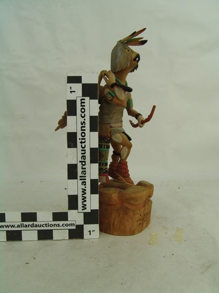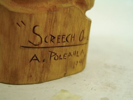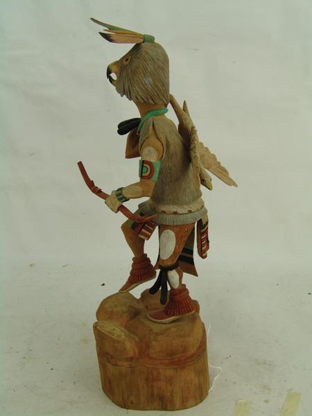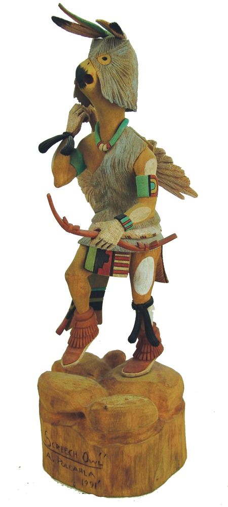 Late 1900s, Superb hand carved and painted cottonwood root Screech Owl kachina doll done in the one-piece style and showing fine details. Very good condition, minor damage. 13"