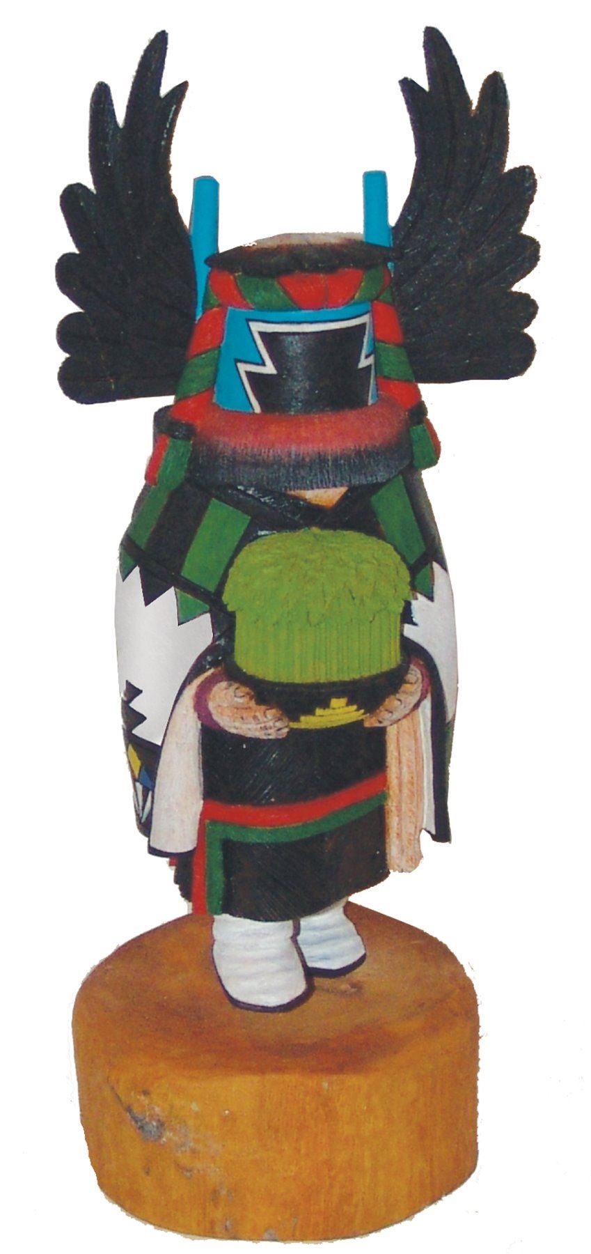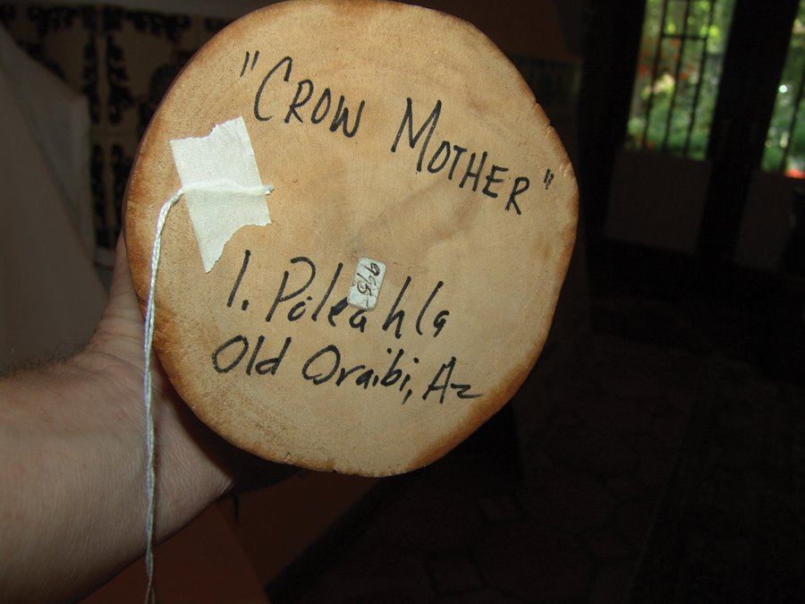 Expertly hand carved and painted cottonwood root "Crow Mother" kachina doll done in fine "one-piece" style. Very good condition, minor repairs.,,14"