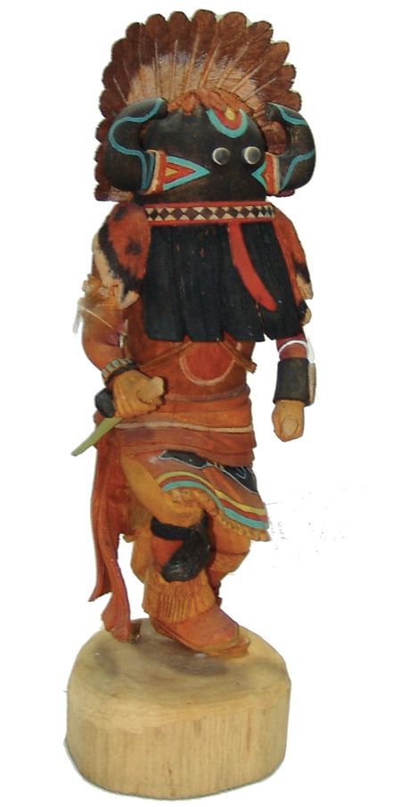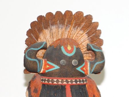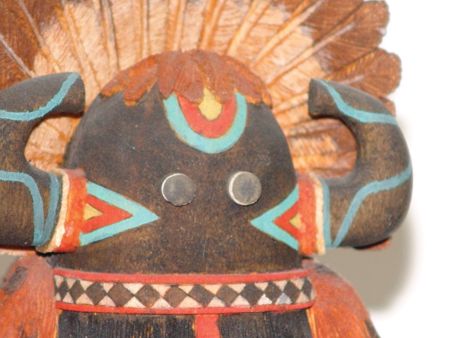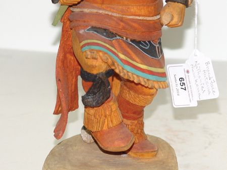 Late 1900s, Fine one-piece-style hand carved and painted broad face doll with many carved details including jewelry. Very good condition with minor repairs. 15-1/2" x 4-1/2" x 5-1/2"