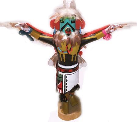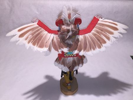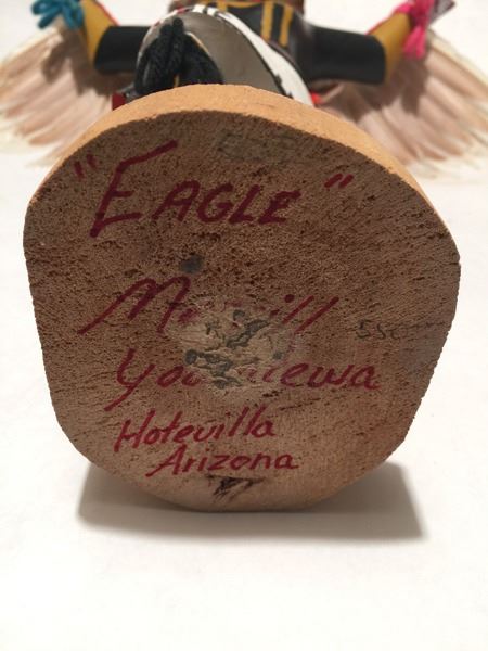 Late 1900s, Beautifully carved and painted Eagle Dancer kachina from Hotevilla; signed M. Yosetewa. Excellent condition. 15" x 15-1/2"