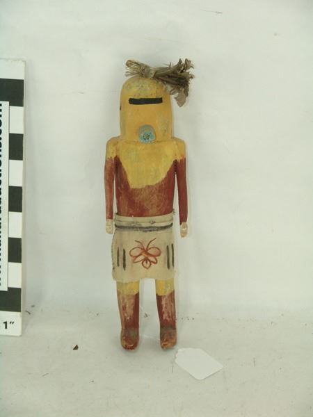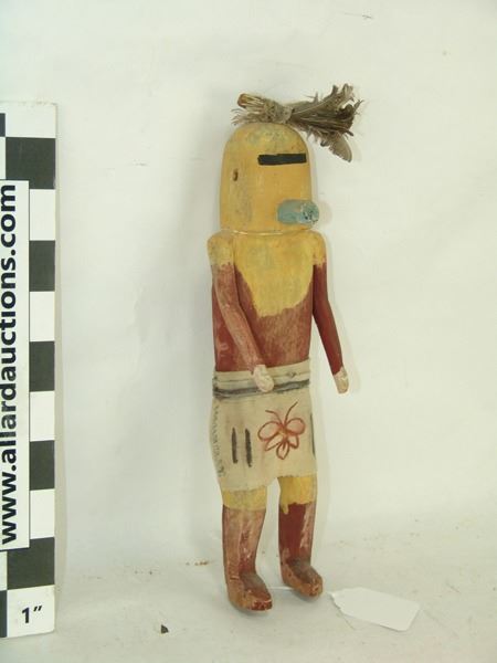 Early/Mid 1900s, Traditional hand carved and painted cottonwood root doll done in traditional style. Good condition, minor flaws/repairs. 10"