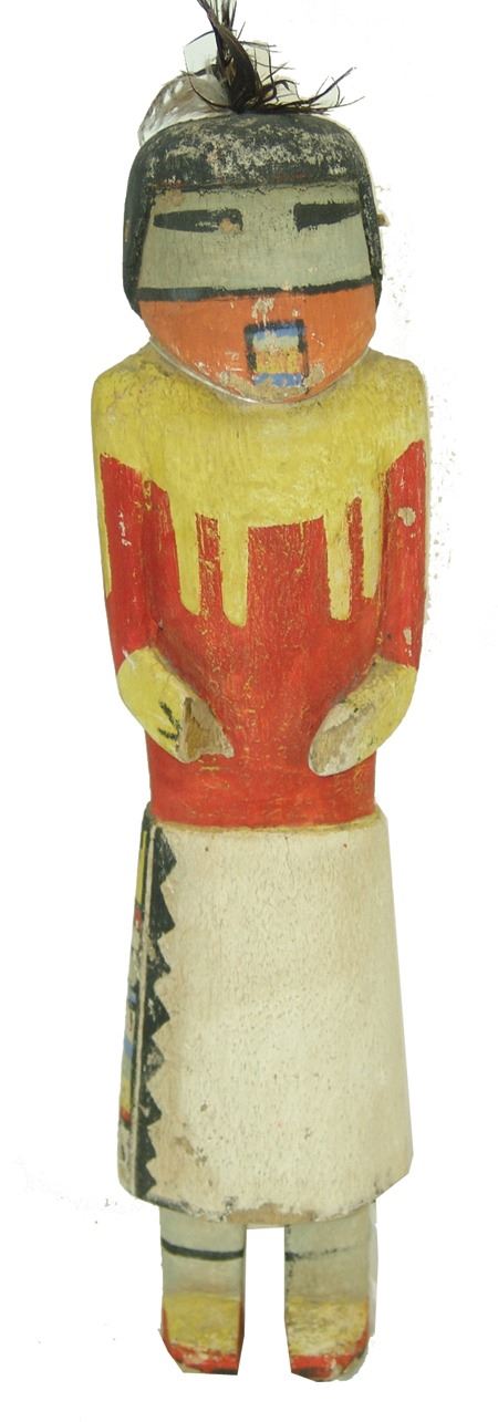 Early/Mid 1900s, Traditional hand carved and painted cottonwood root doll done in traditional style. Good condition, minor repair. 10"