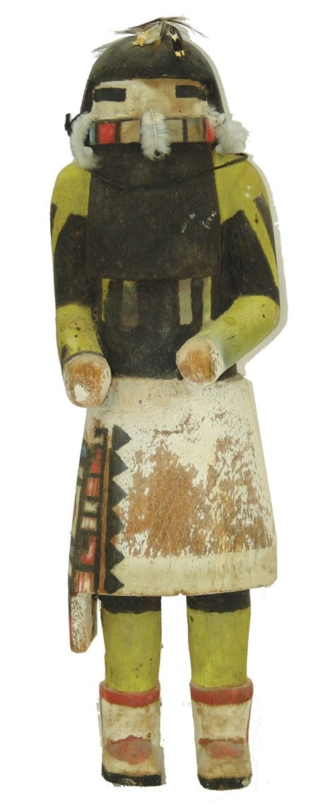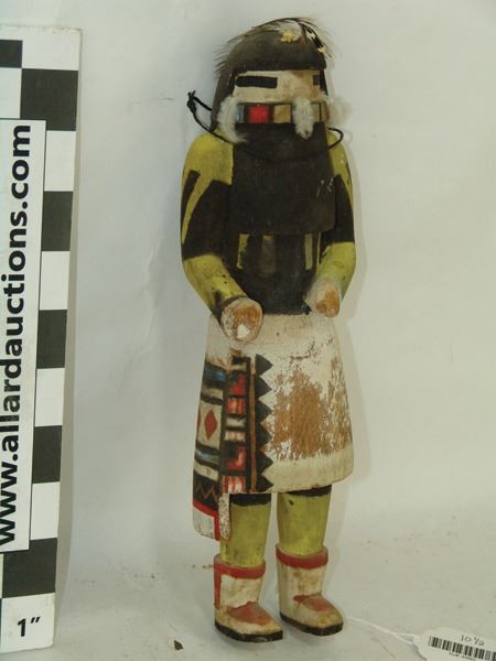 Early/Mid 1900s, Traditional hand carved and painted cottonwood root doll done in traditional style. Good condition, minor flaws/repairs. 10-1/2"