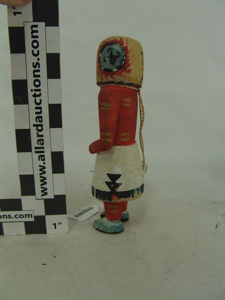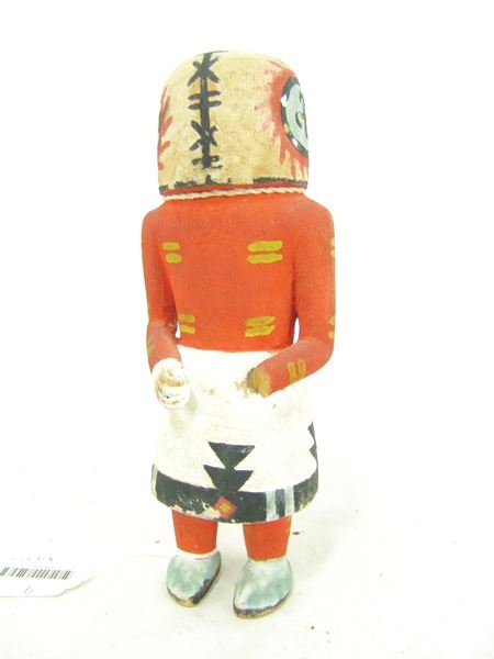 Ca. 1940s, A wonderful hand carved and painted cottonwood root kachina doll, in original as-found, well-used condition. Missing one hand. 9"