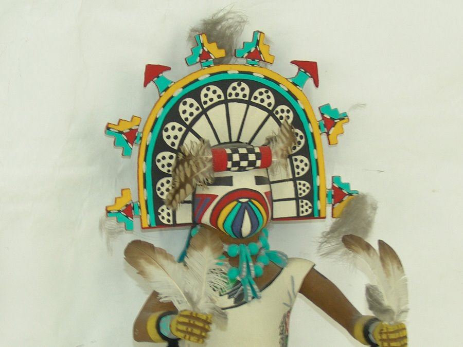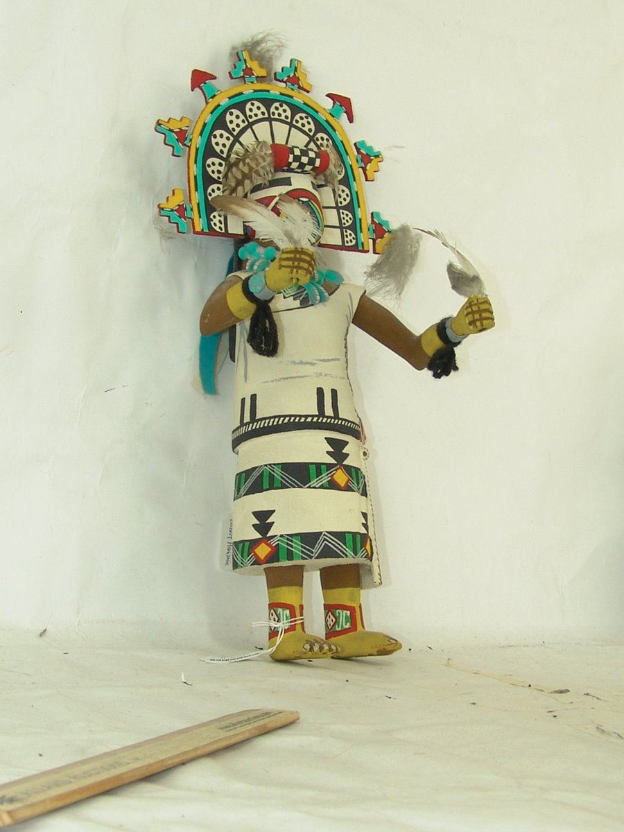 Wonderful, old style, hand carved and painted cottonwood root "Palik Mana" Butterfly Woman doll with large "tablita" headdress. Very good condition, minor repairs.,,18"