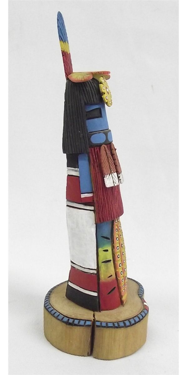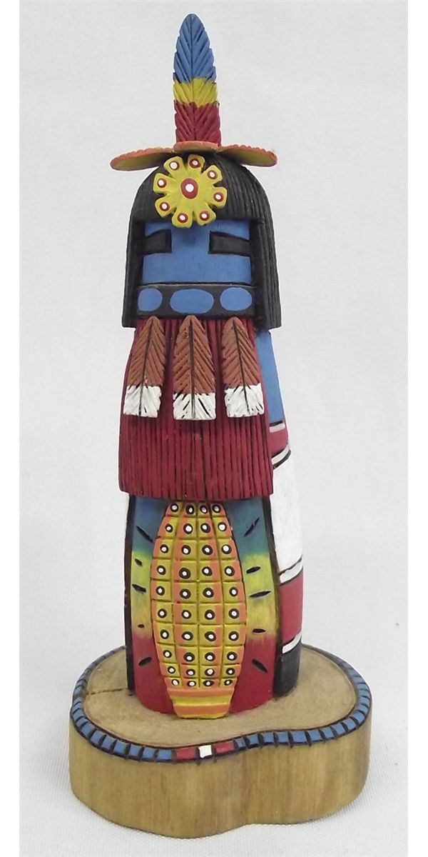 Hopi Kachina - Harold Ami. Bright colors and fine carving on this Hopi Kachina by famous artist, Harold Ami. It measures 6''H x 2.75''W at the base stand.