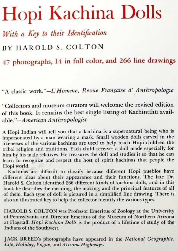 Native American Hopi Kachina Dolls with a Key to their Identifications by Harold S. Colton, Softback Reference Book, with photographs by Jack Breed