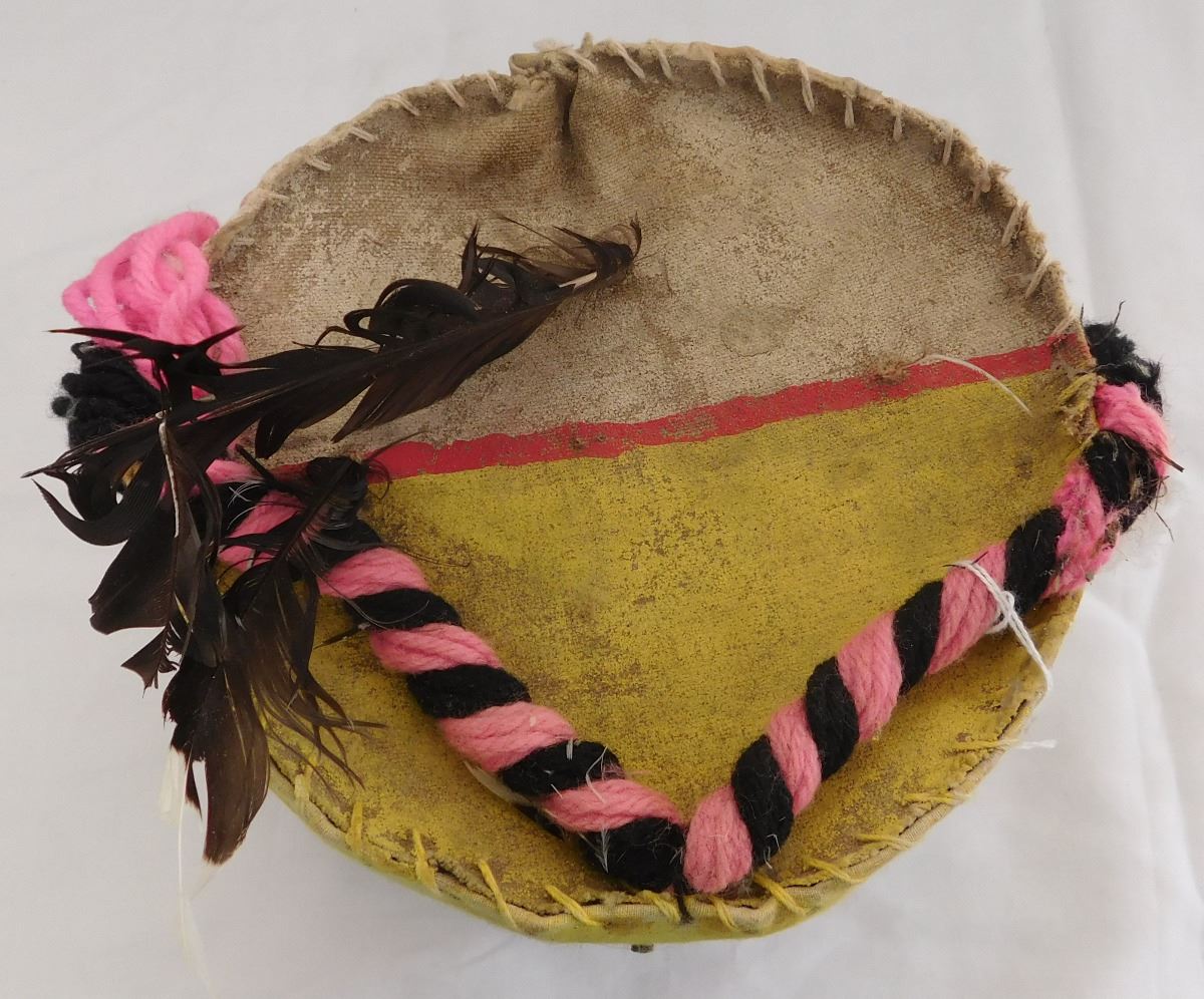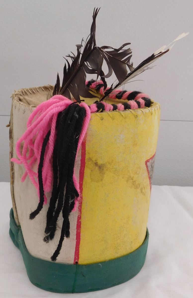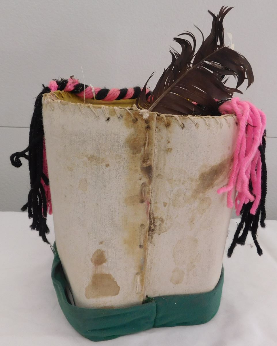 Hopi Kachina Style Mask from the 1970's. This item measures 8 1/2 x 8 inches and is from New Mexico. Item is made from paint, cloth and roofing. Condition: Scuffs, dirt and paint loss, see images. Shipping: $21.50.