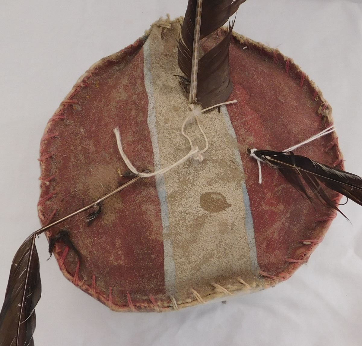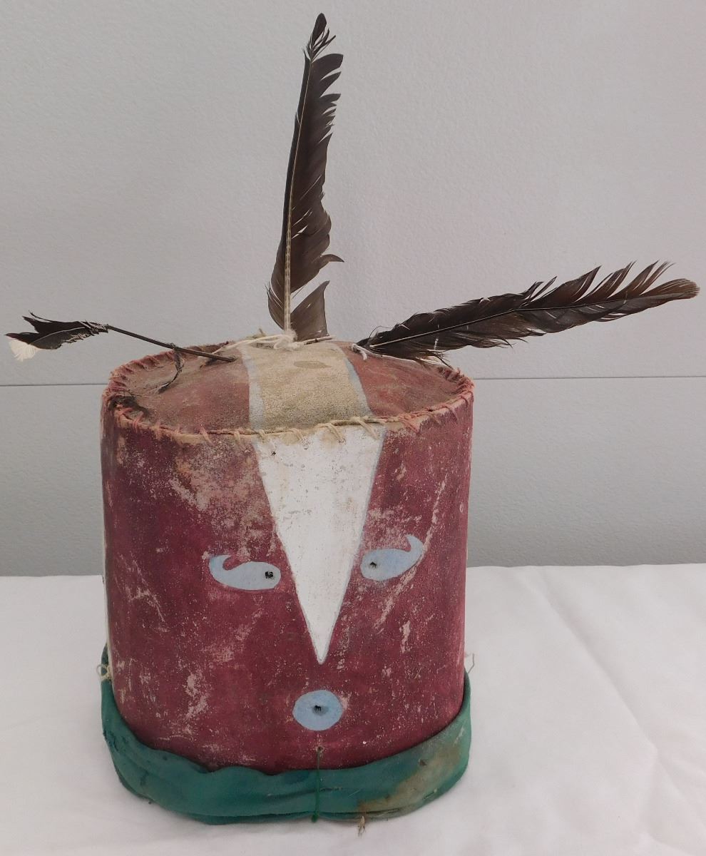Hopi Kachina Style Mask from the 1970s. This item measures 8 1/2 x 8 inches and is from New Mexico. Item is made from paint, cloth and roofing. Condition: Scuffs, dirt and paint loss, see images. Shipping: $24.50.