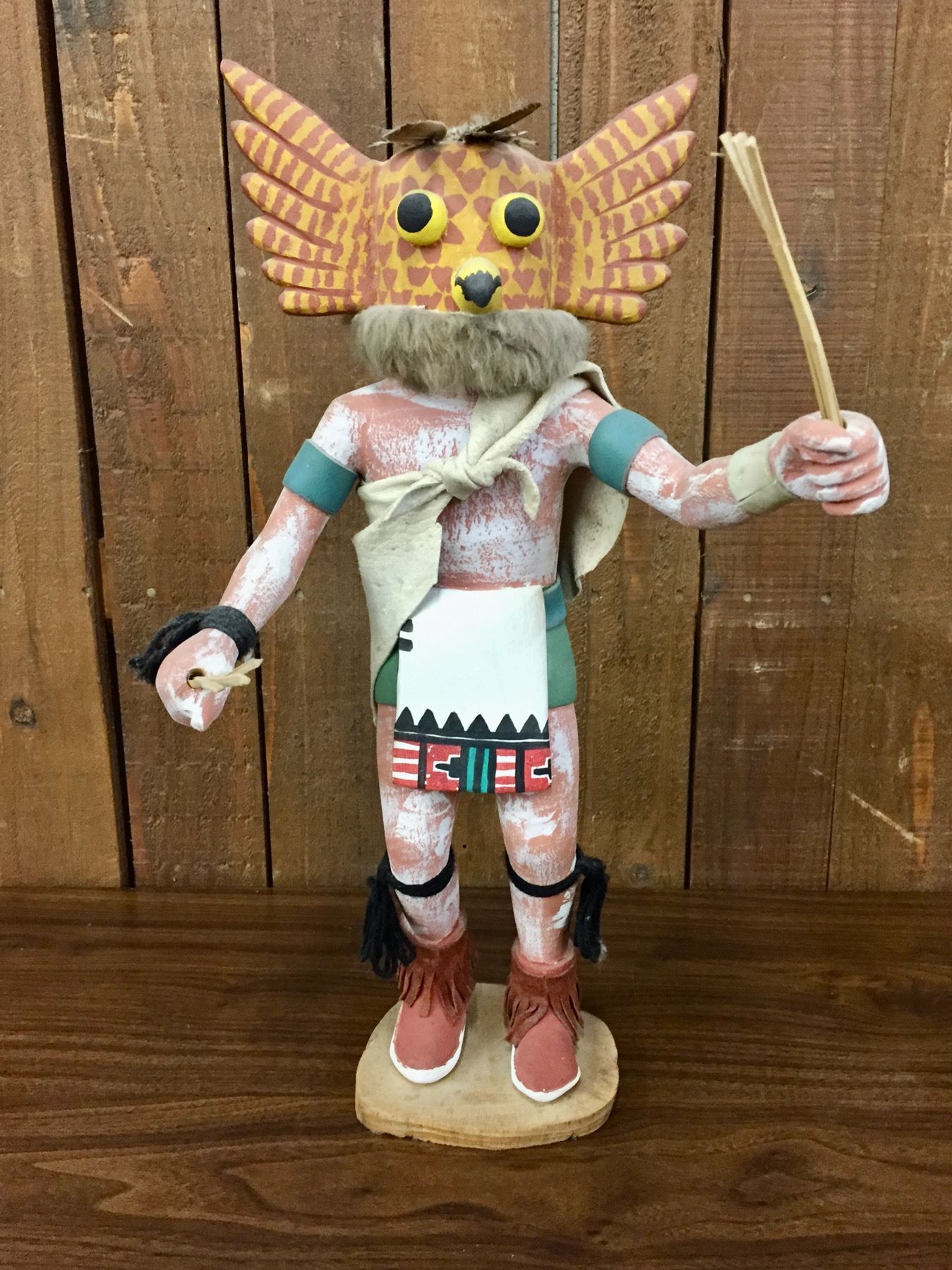 Description: Presented for sale in this lot is a larger sized, handmade, Hopi Owl Kachina by Luther Honeyestewa. Maker: Luther Honeyestewa. Approx. Age: Vintage. Size: 11 inches wide x 17-1/2 inches tall. Condition: Good for its age, normal wear expected. Please look closely at the pictures - they are an important part of our description. Shipping: There will be a $8 handling, packaging fee for shipping this lot. The actual cost of postage will be added on top of that.