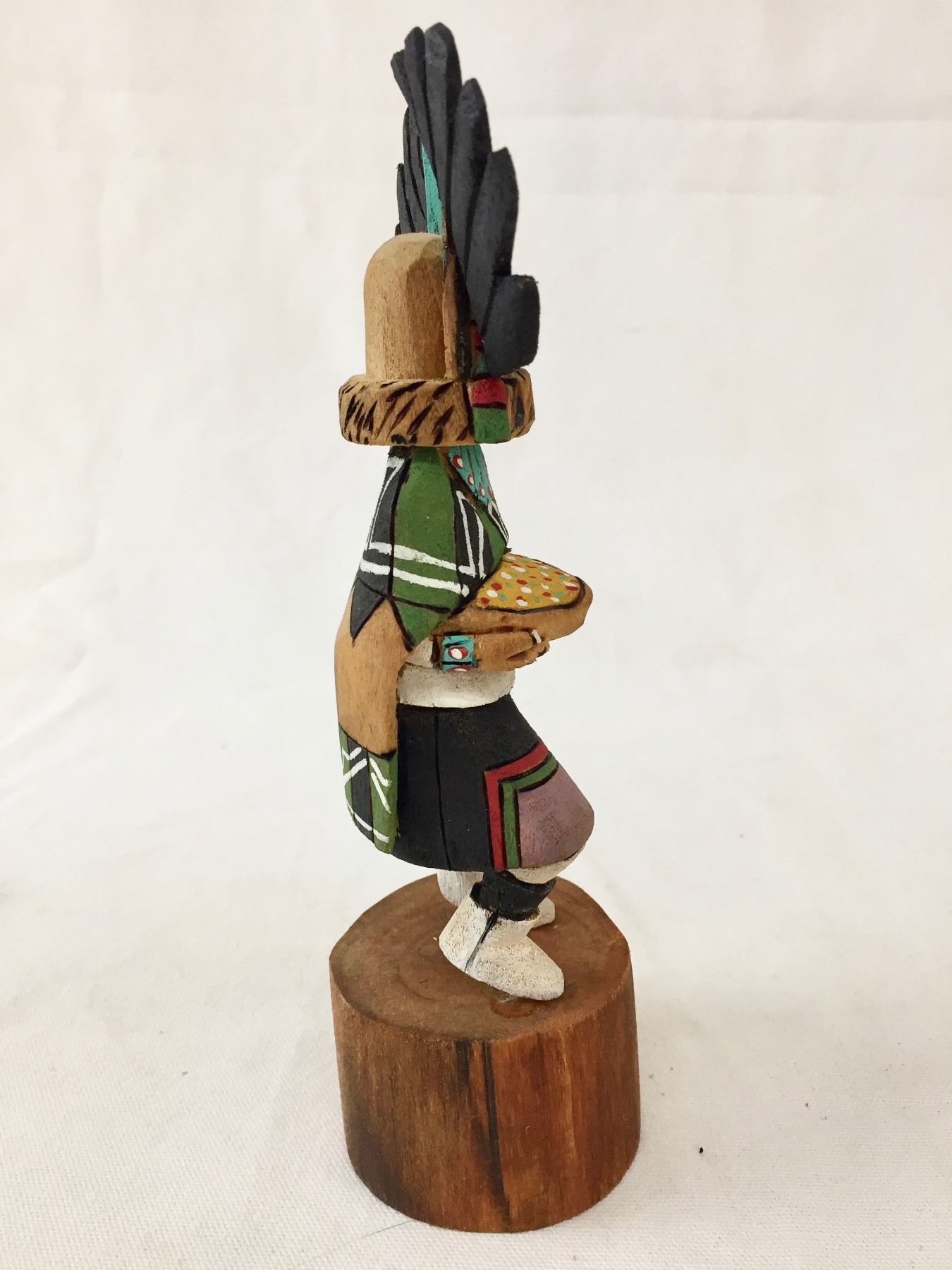 Description: For sale in this lot is a nice Hopi Kachina. This Kachina features hand carved and hand painted details. Maker: Thomas Pashano, Hopi. Approx. Age: 2006. Size: 2-3/4”w x 7-3/4”t. Condition: Good for its age, normal wear expected. Please look closely at the pictures - they are an important part of our description. Shipping: There will be a $10 handling / packaging fee for shipping this lot. The actual cost of postage will be added on top of that.