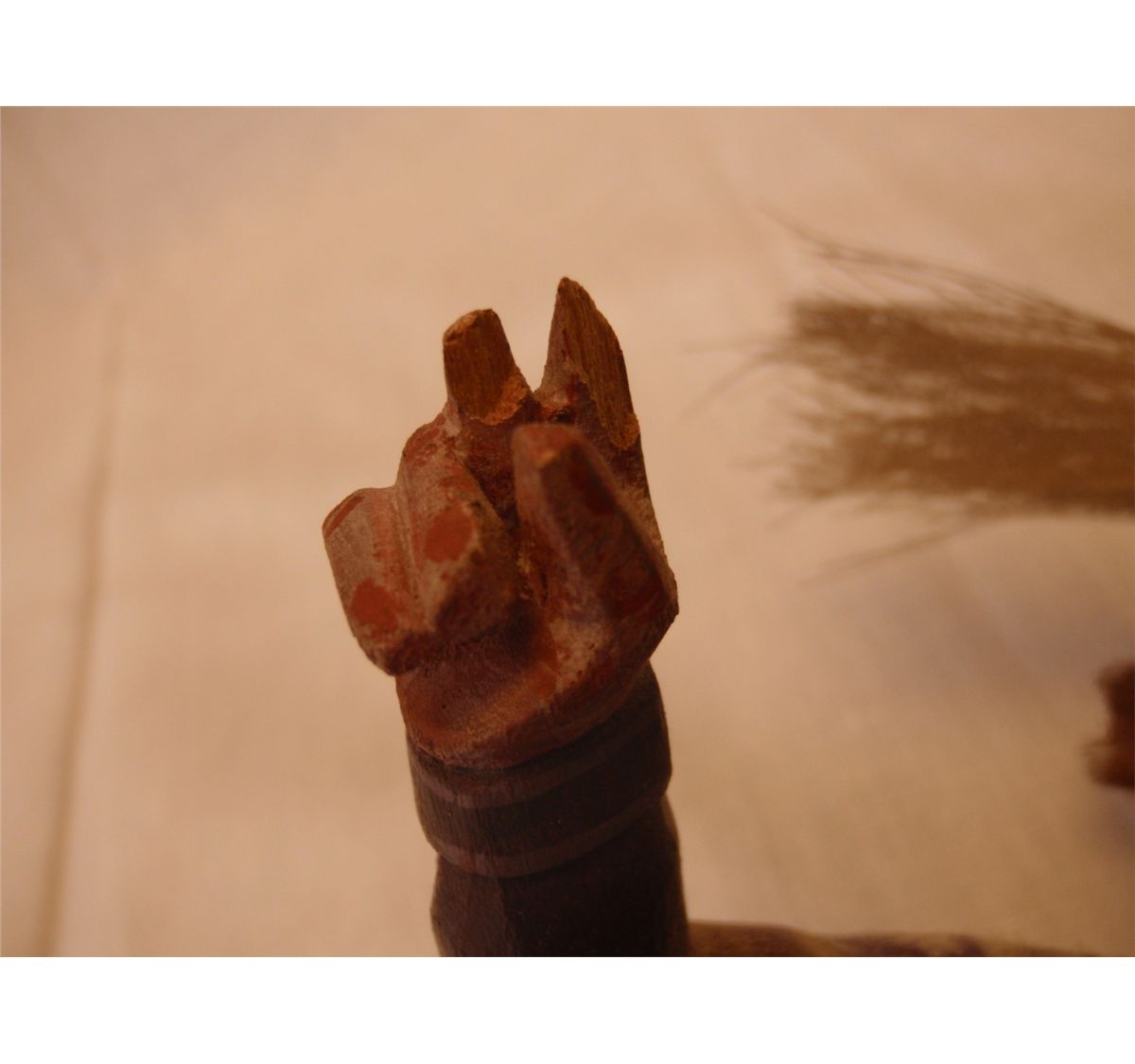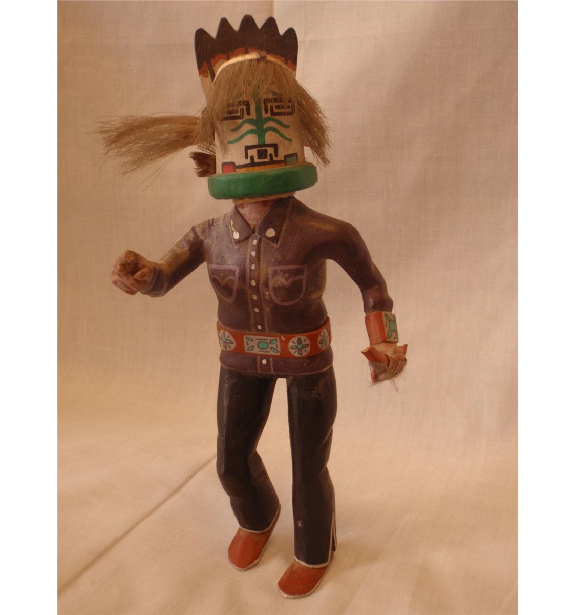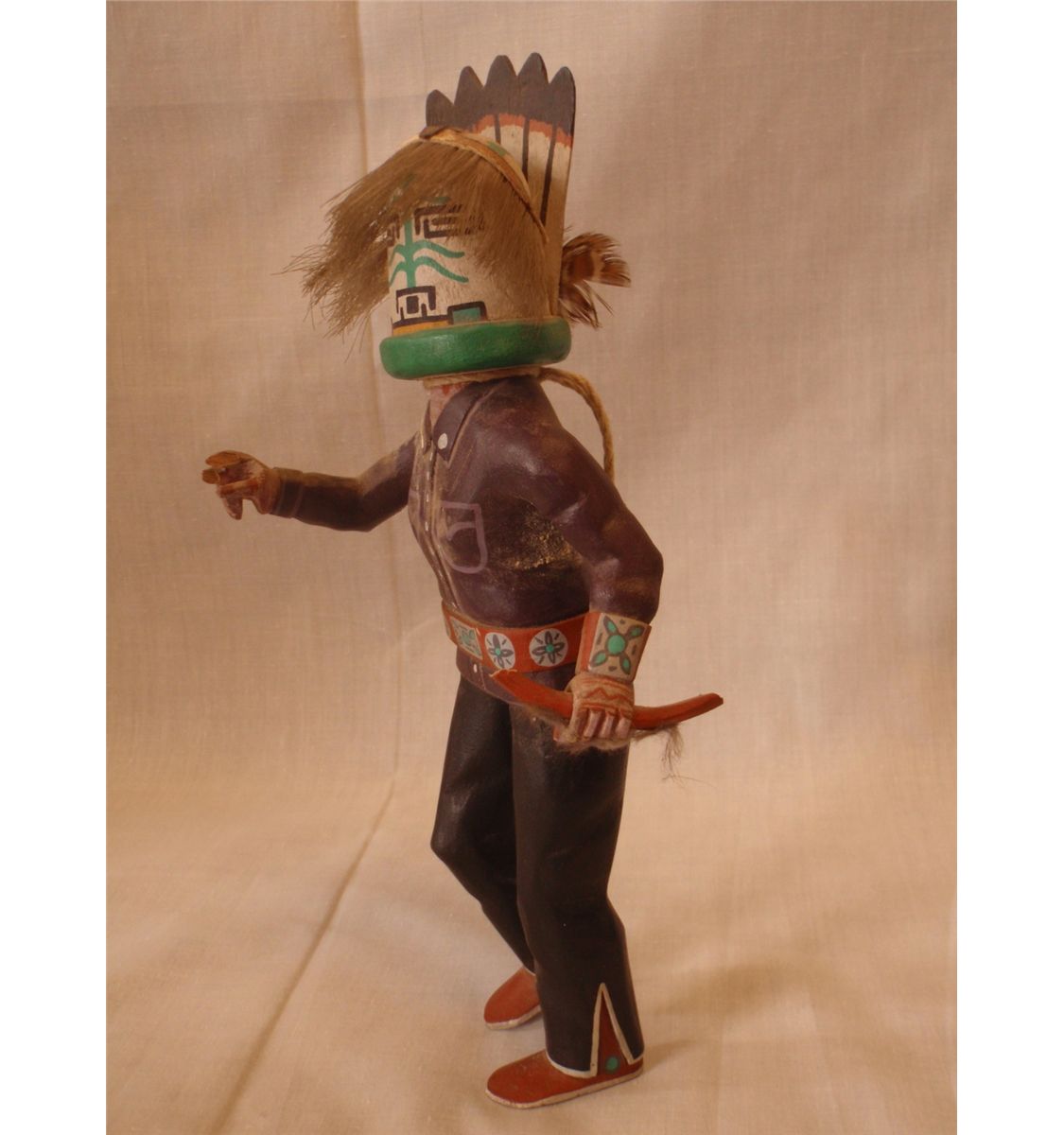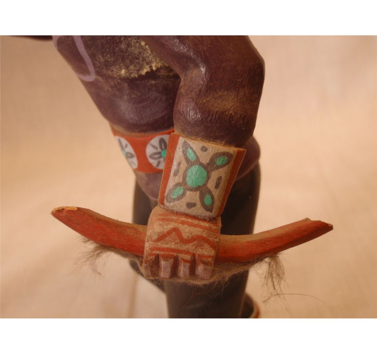 Hopi Kachina. All wood and nicely painted. Broken bow and missing item in right hand with finger damage on right hand. 10 1/4" Tall. Shipping on this lot: $10.00. Additional Shipping Charges for Lots sent outside of the U.S