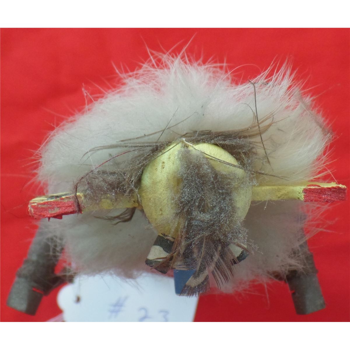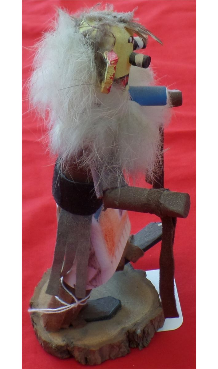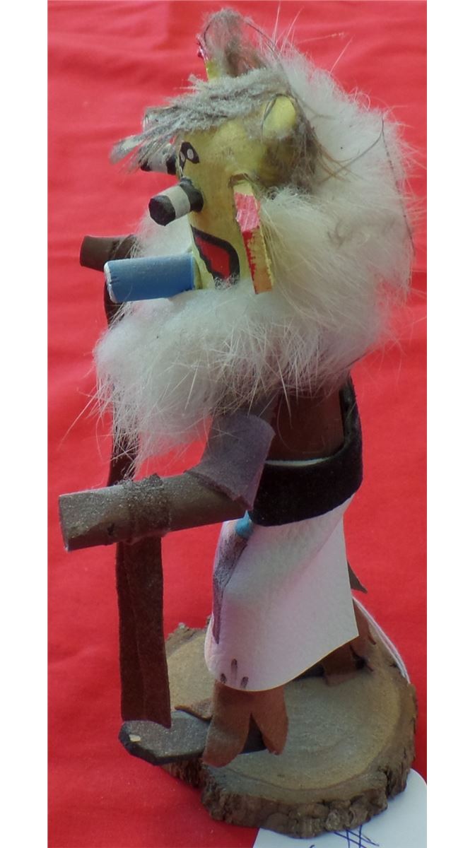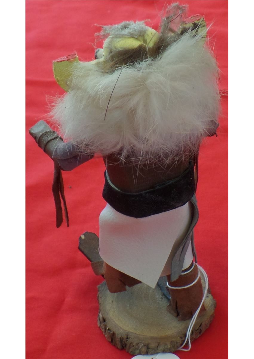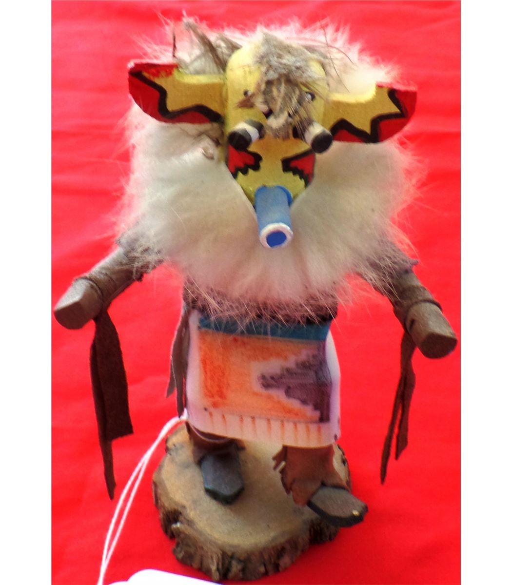 Hopi Kachina from the 1960s. Made of cottonwood, fur and leather. Measures 7" x 3" x 3". Hopi, central Arizona. Classic paint and design on this Kachina. Condition: Nice painted Kachina appears to be dancing. Shipping: $18, requires-double box.