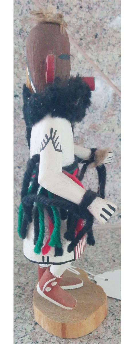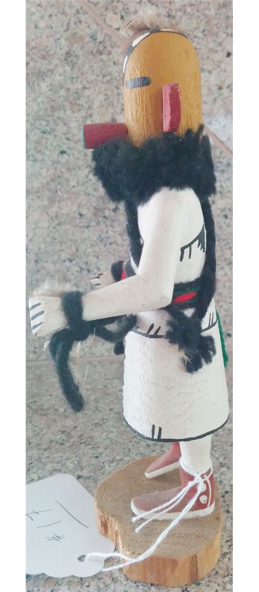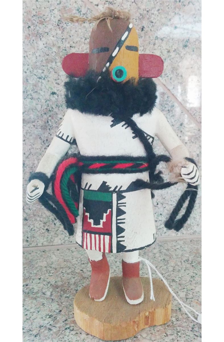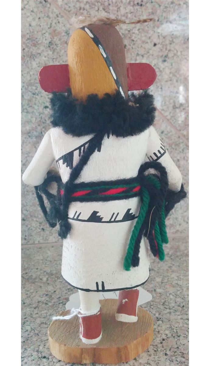 Hopi Kachina from the 1950's. Made of cottonwood, wool and feathers. This item is titled Sunset Crater, and signed by L. Multing. It is approx. 7 1/2 " x 4" x 2". Condition: Nice condition, see images. Shipping: $17.00.