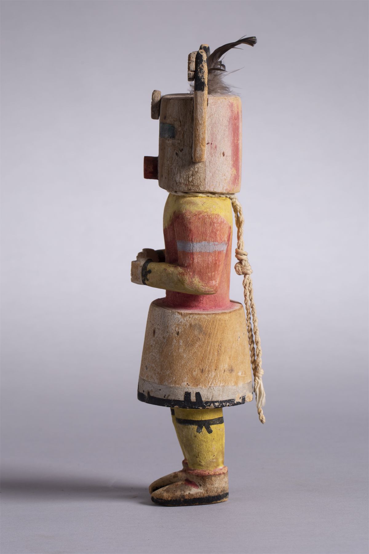 Hopi Katchina Doll, Ca. 1930s. Carved of willow tree wood and decorated in mineral pigments. Nice warm patina as appropriate with age. Measurements: 10 1/2"h x 3 1/2"w