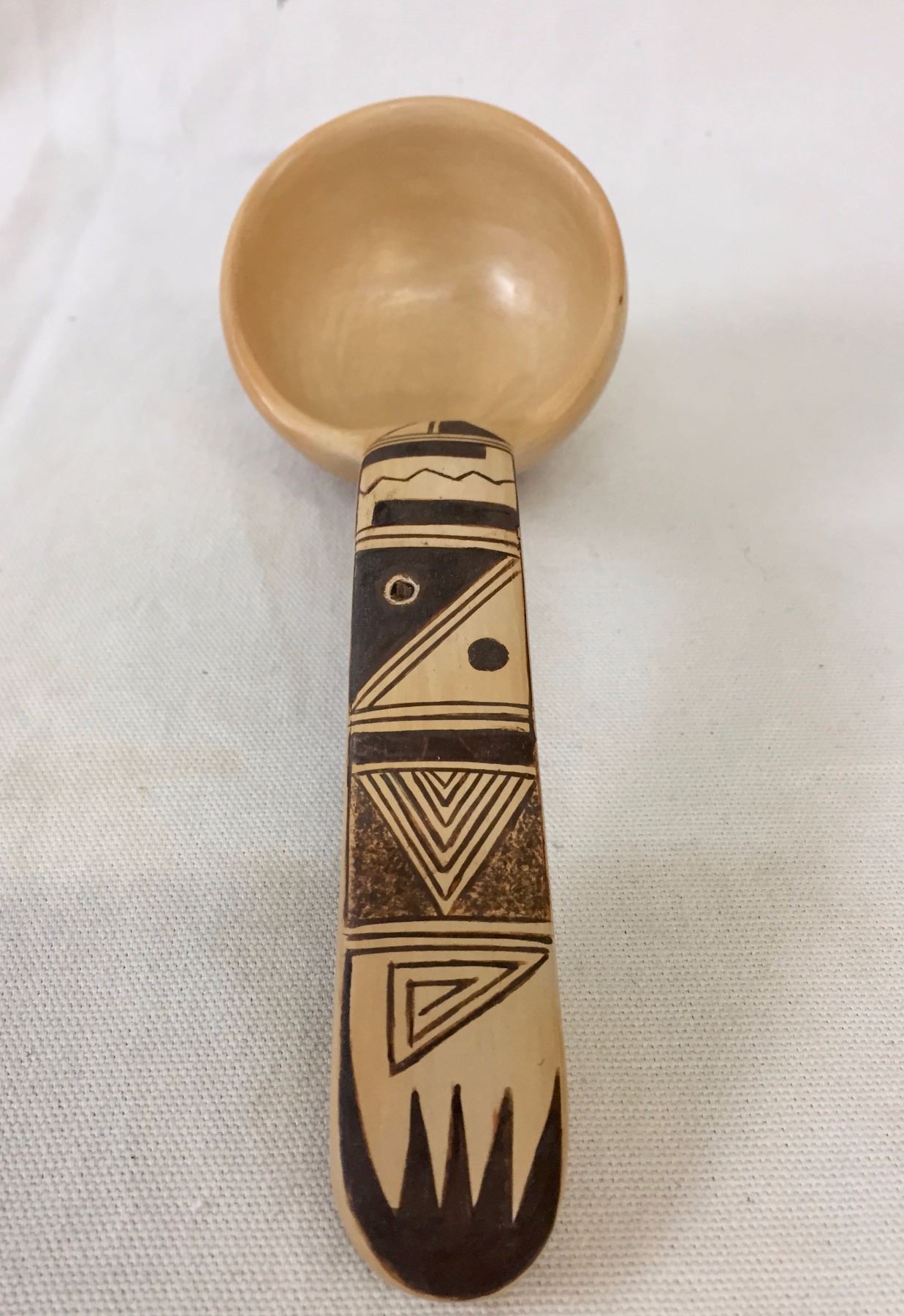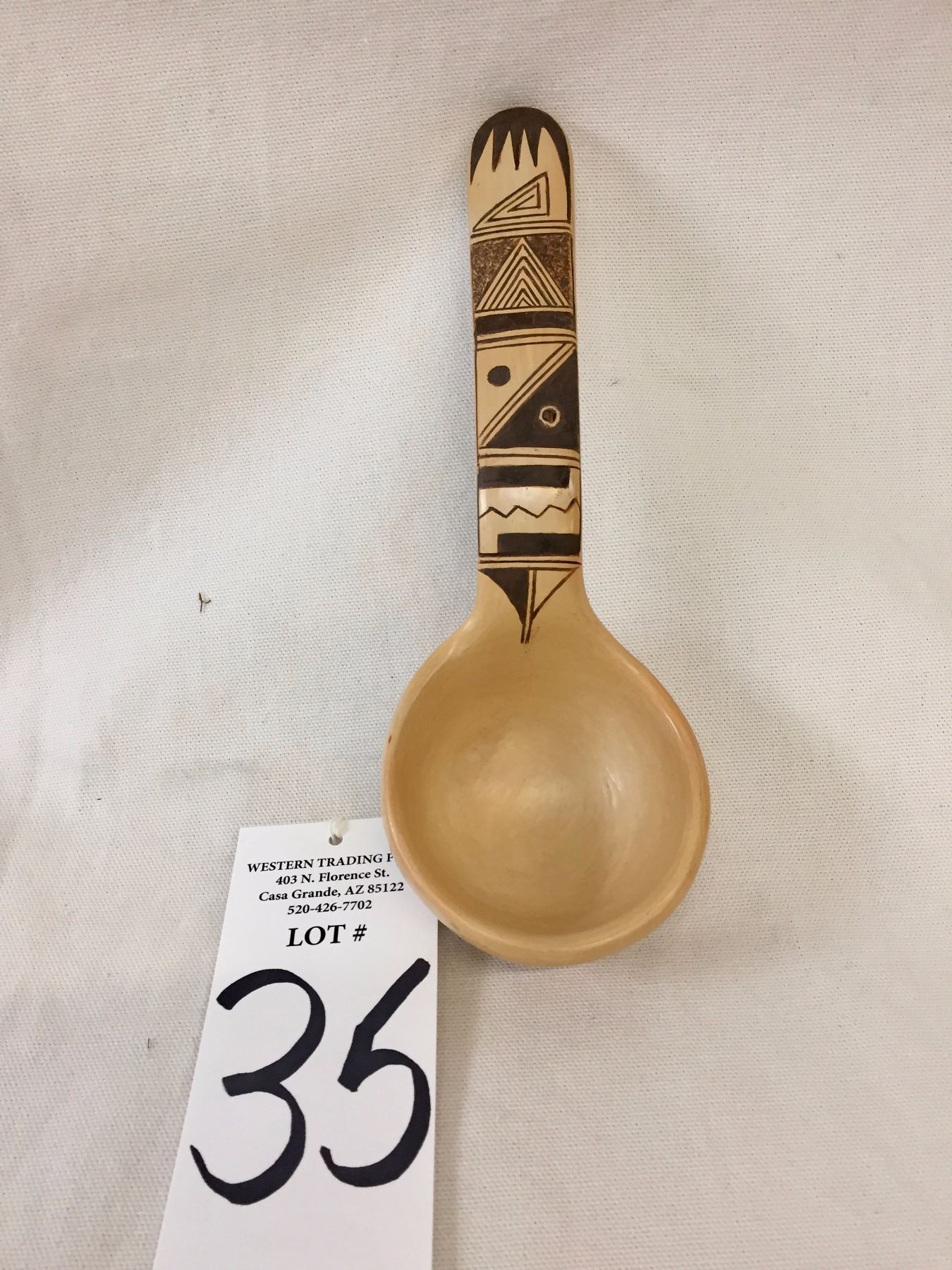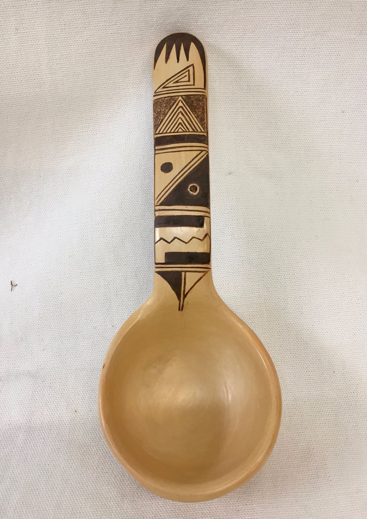 Description: New Hopi ladle. Maker: Namingha/Fritz. Approx. Age: Contemporary. Size: Approx. 8” l x 3” w. Condition: Good for its age, normal wear expected. Please look closely at the pictures - they are an important part of our description. Shipping: There will be a $8 handling / packaging fee for shipping this lot. The actual cost of postage will be added on top of that.