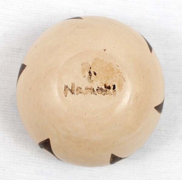 Native American Hopi Miniature Pottery Bowl by R. Namoki, measures 1.5'' x 2'' and is signed on the bottom