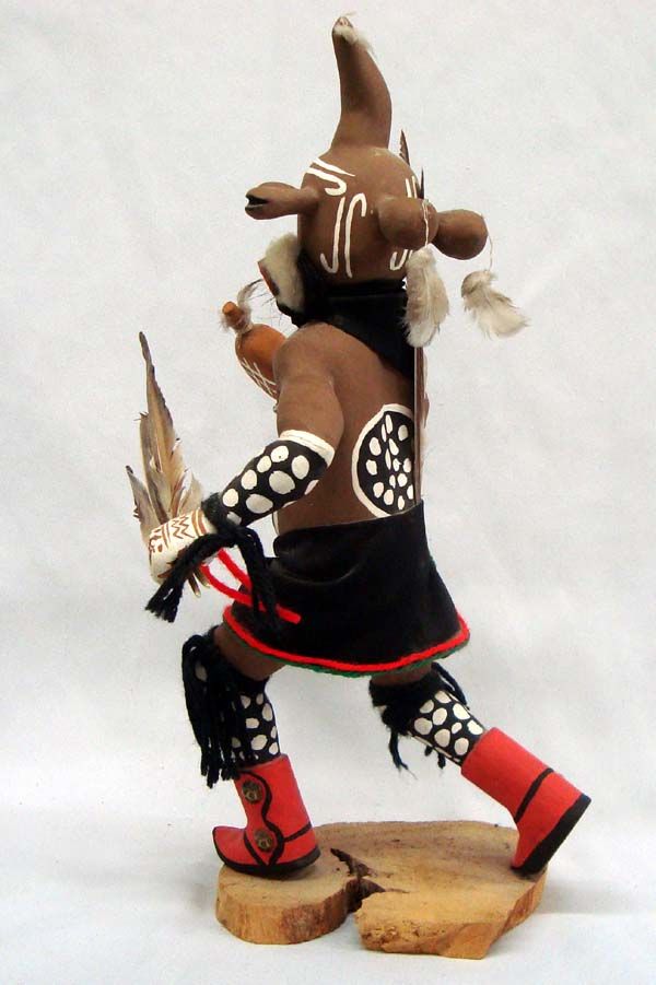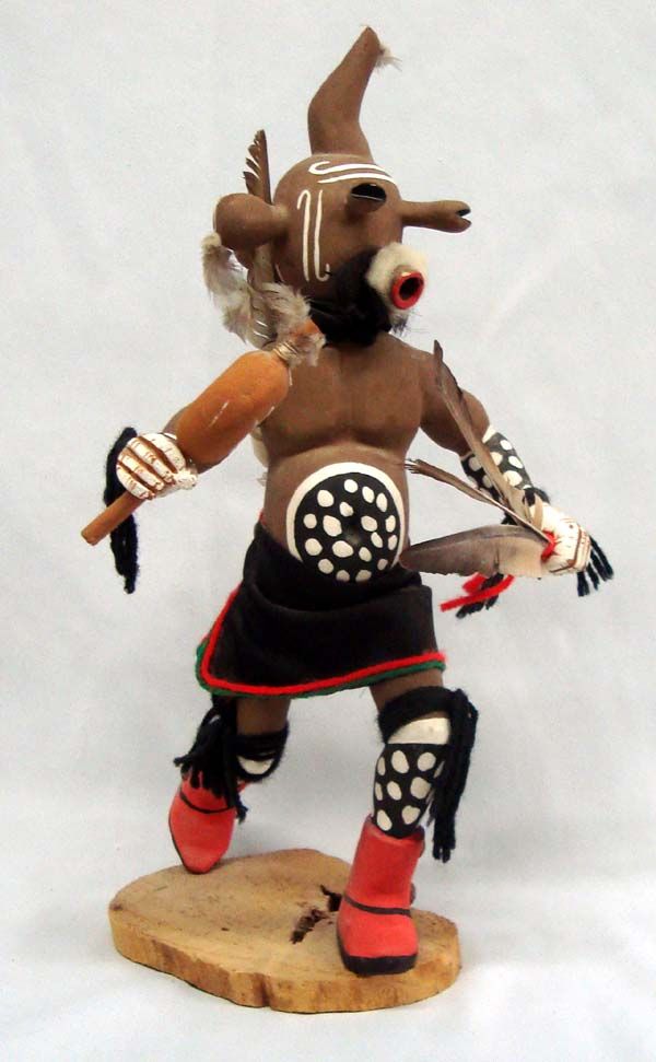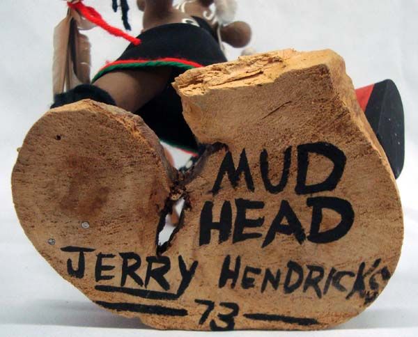 Hopi Mud Head Kachina. These wooden dolls carved in the likenesses of the various kachinas are used to help teach Hopi children the tribal religion and traditions. The Koyemsi, or Mudhead Kachina, is a clown who may be seen in most Hopi ceremonies. Mudhead Kachinas drum, dance, play games with the audience, and may act as announcers for events. They often give prizes or rewards for the races and guessing games they organize. The term ''mudhead'' comes from their masks which have mud applied to them. 15''H x 9''W.