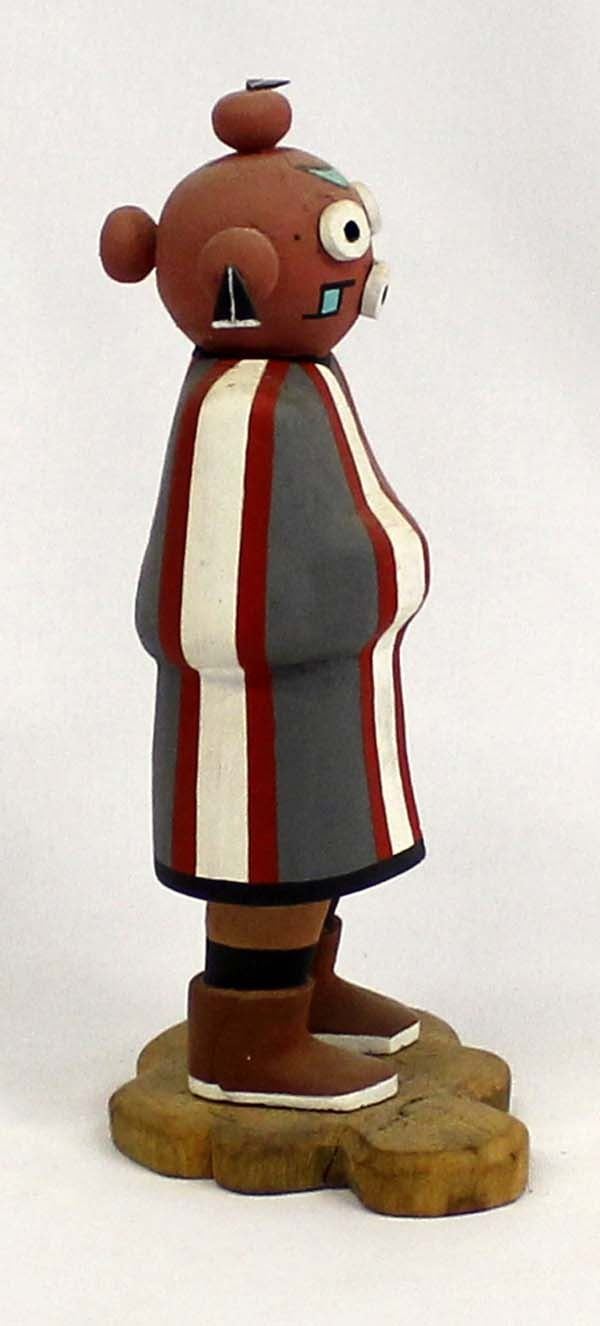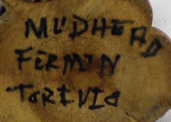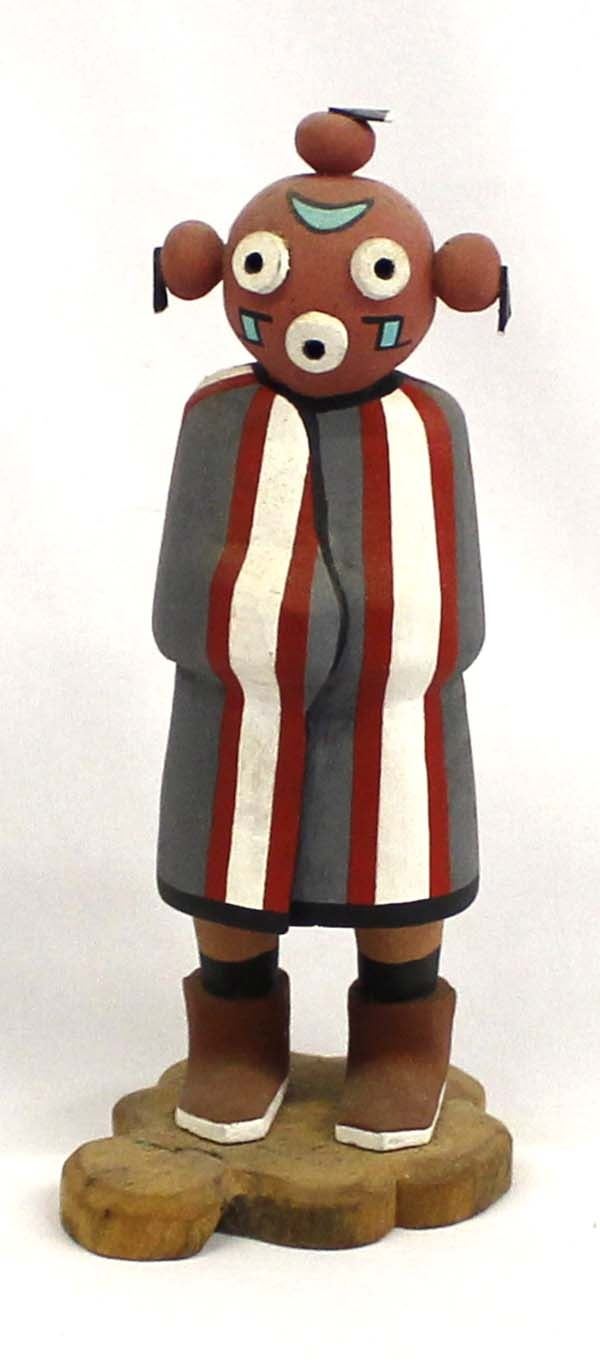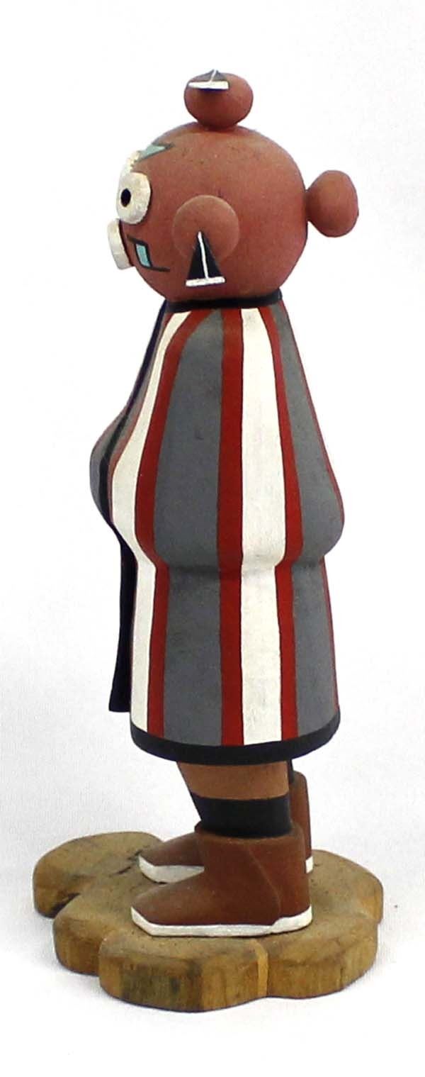Native American Hopi Mudhead Kachina by Fermin Torivio, measures 3'' x 8'' x 3.5'' and is signed on the bottom