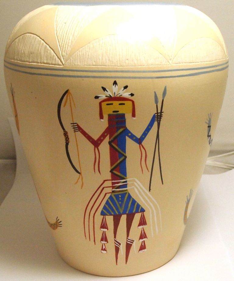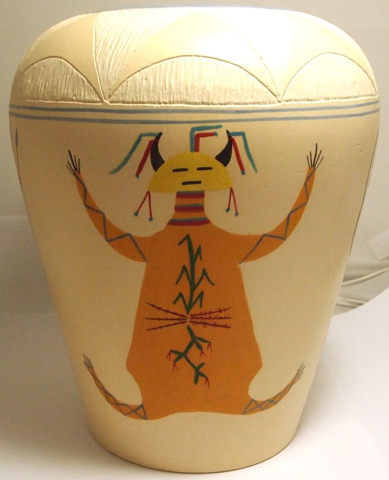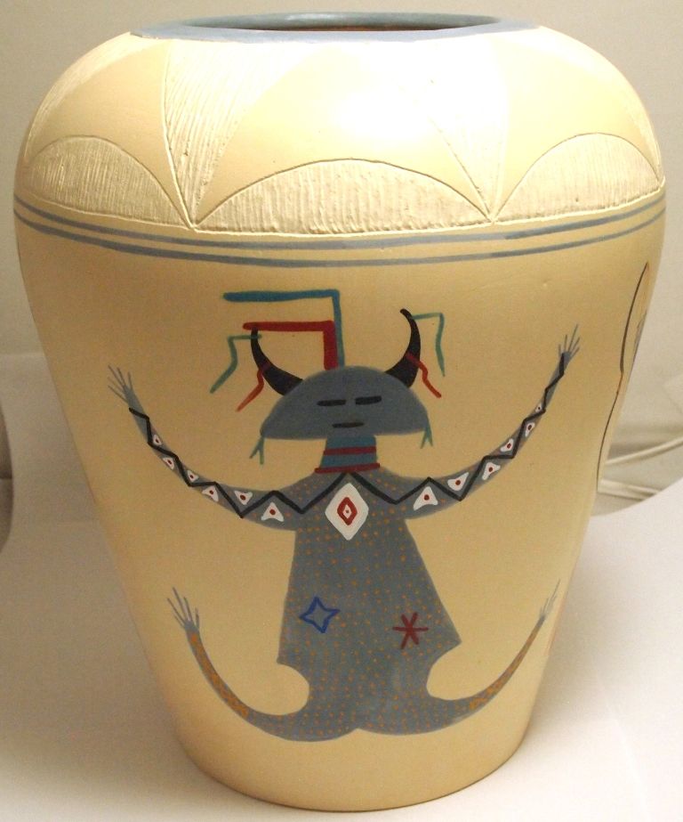 Hopi Multi Kachina Design Etched & Painted Pottery - J Robertson