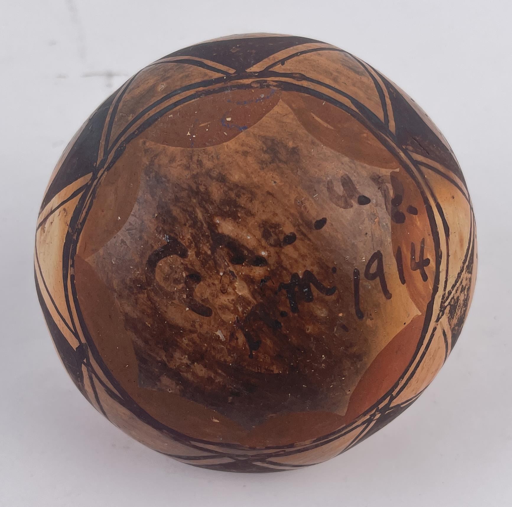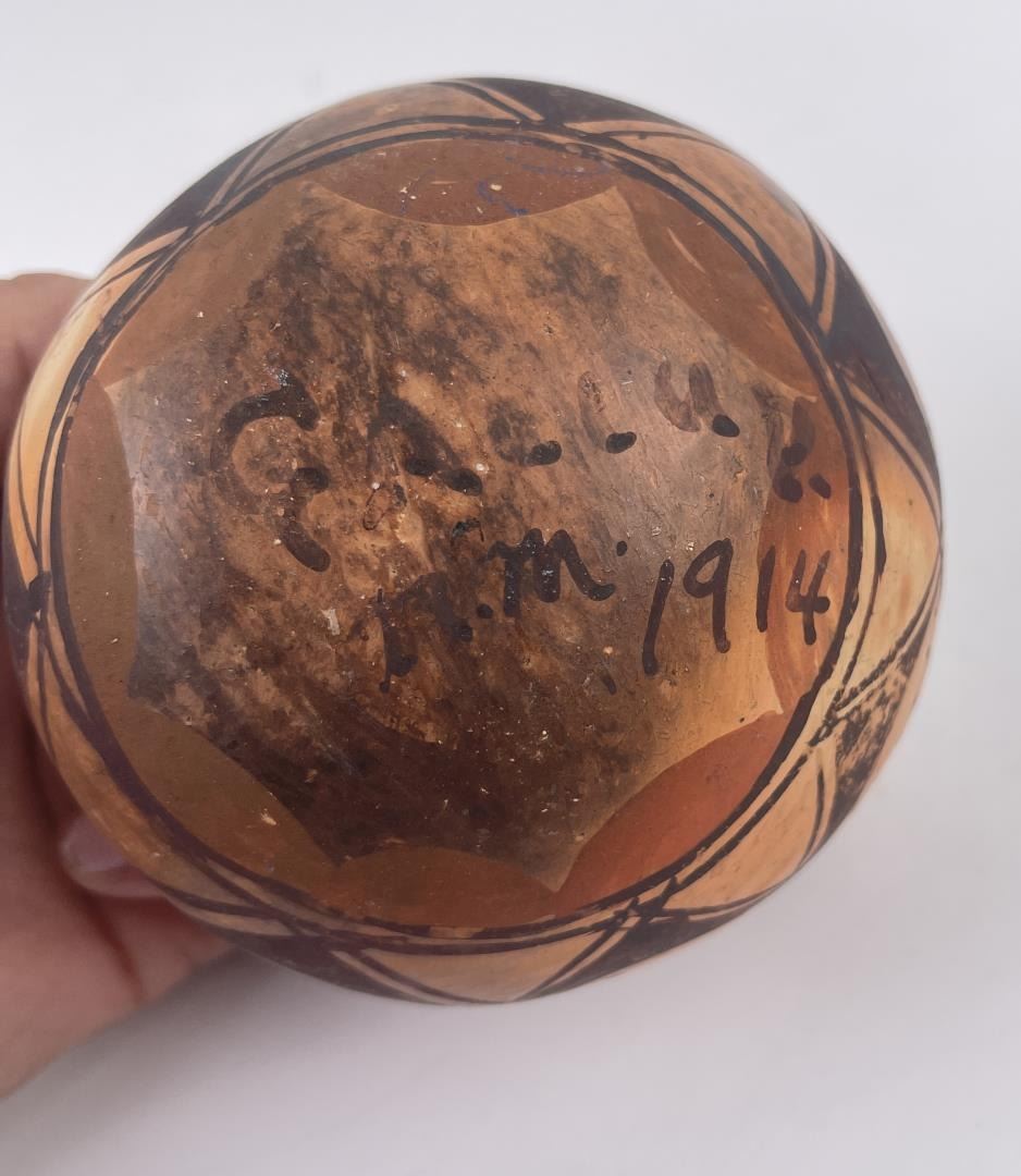 Signed Gallup New Mexico 1914 on base. 4" tall, 3 3/4" diameter. Allard Auction Collection Inv: HAH 42893