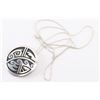 all sterling with geometric design in round circle with chain made by silversmith Arthur Allen Lomayestea.