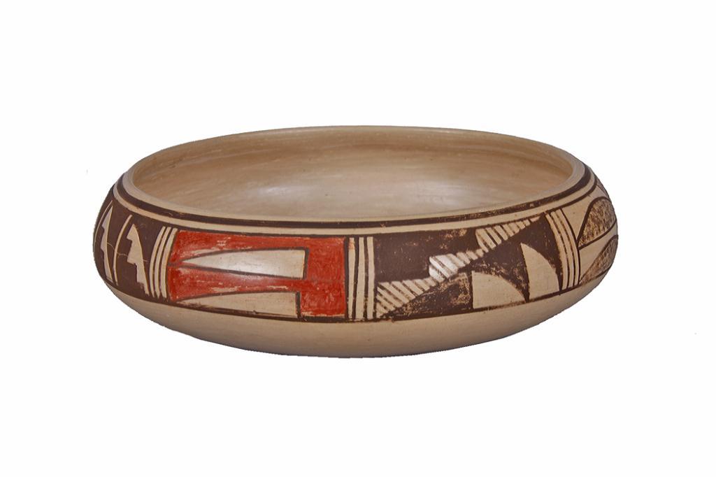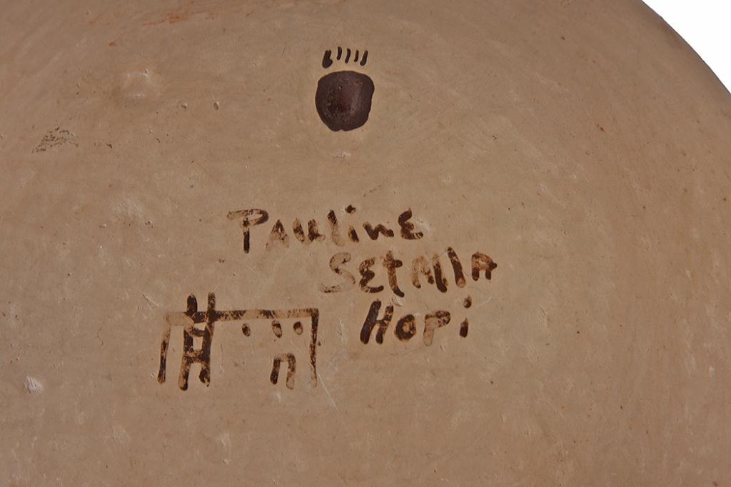 Hopi Polychrome Bowl By Pauline Satella, signed on base, measures 9"Wx3 1/2"H, in overall excellent condition, shows age.By Pauline Satella, signed on base, measures 9"Wx3 1/2"H, in overall excellent condition, shows age.