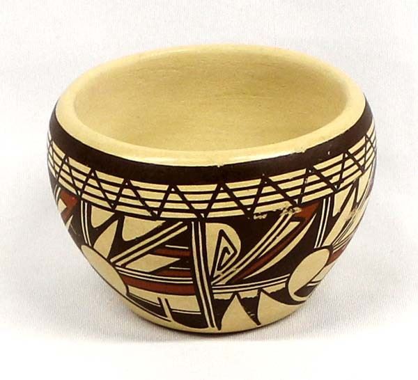 Native American Hopi Polychrome Pottery Bowl by Jofern Silas Puffer, measures 3'' x 4'' and is signed on the bottom, FYI: ''Jofern Puffer is part of the Tewa/Laguna, Kachina Clan; active 1990-present: polychrome seed jars.