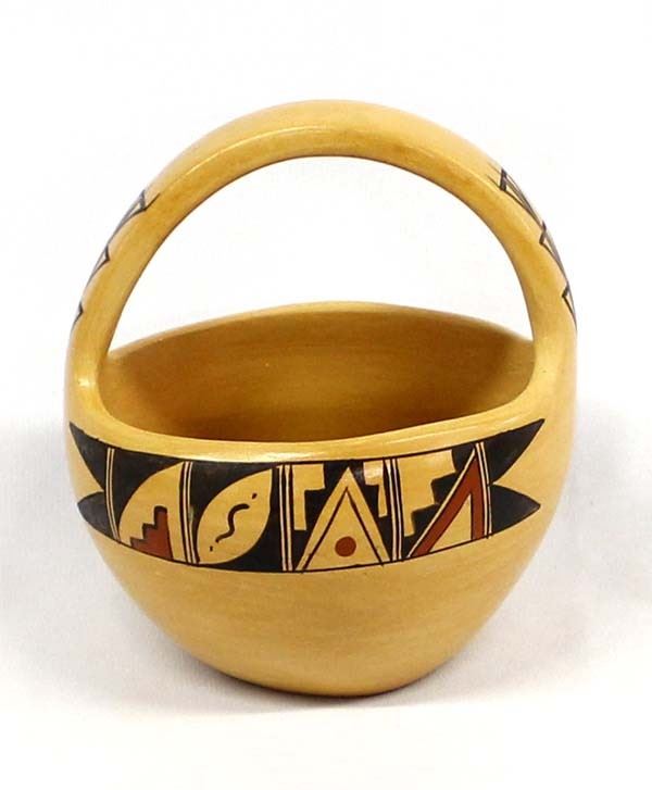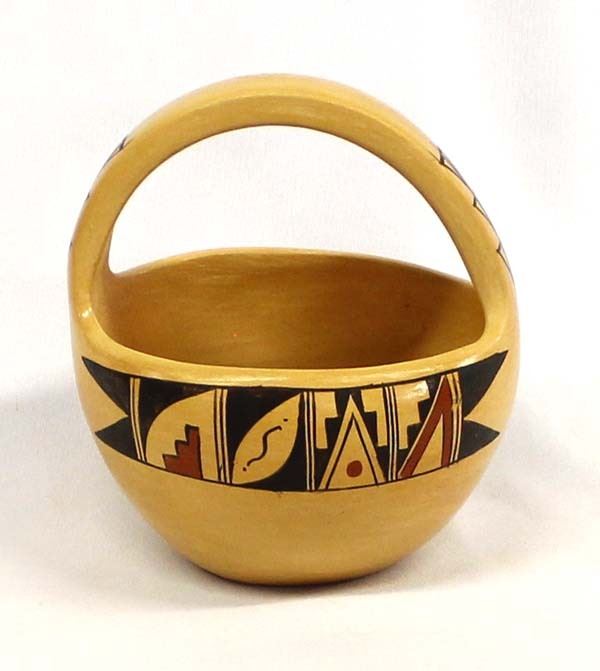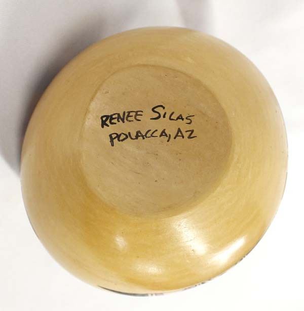 Native American Hopi Pottery Basket by Renee Silas of Polacca, AZ, measures 5.5'' x 6.5'' x 5'' and is signed on the bottom,