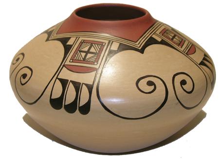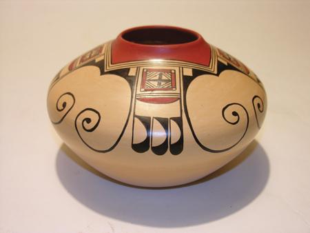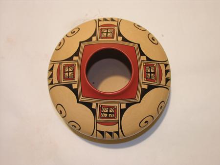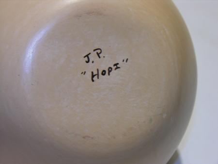 Circa Late 1900s, Classic Hopi bowl with polychrome bird and geometric motif. Hallmarked. Pristine condition. 4-1/2" x 7-1/2"