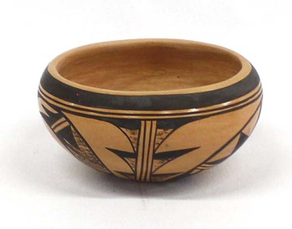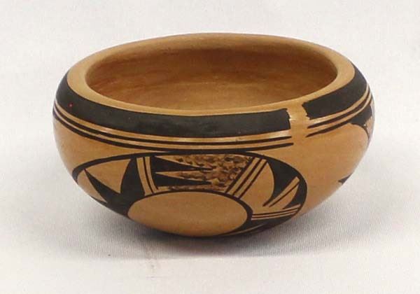 Native American Hopi Pottery Bowl by Barbara Polacca, measures 2'' x 4'' and is signed on the bottom, FYI: ''Barbara Polacca is a Hopi-Tewa of the Spider Clan who has been an active potter since 1970. She is an accomplished potter known for making seed jars, cylindrical vases, bowls, canteens and tiles.''